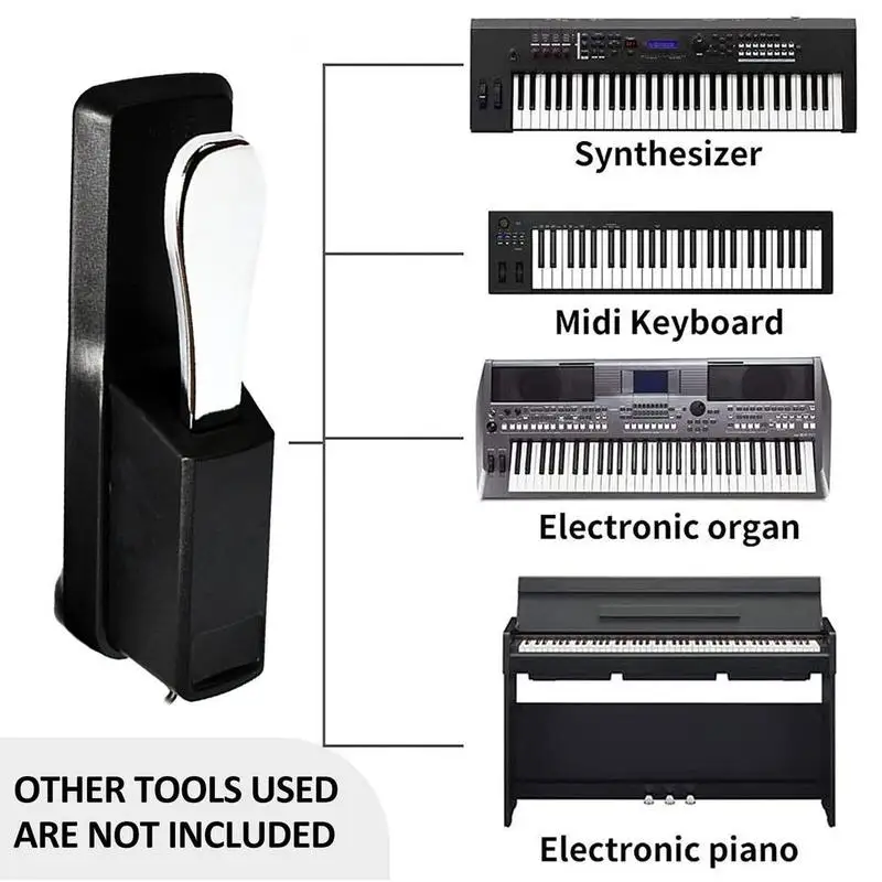 6. Широкое применение и совместимость: обычная педаль клавиатуры с поворотным переключателем полярности может широко использоваться в MIDI клавиатуре, цифровом пианино, электронной клавиатуре и т. д., например, для Yamaha, для Casio, для Roland, для KOG, для Bellinger, для mugg и т. д.