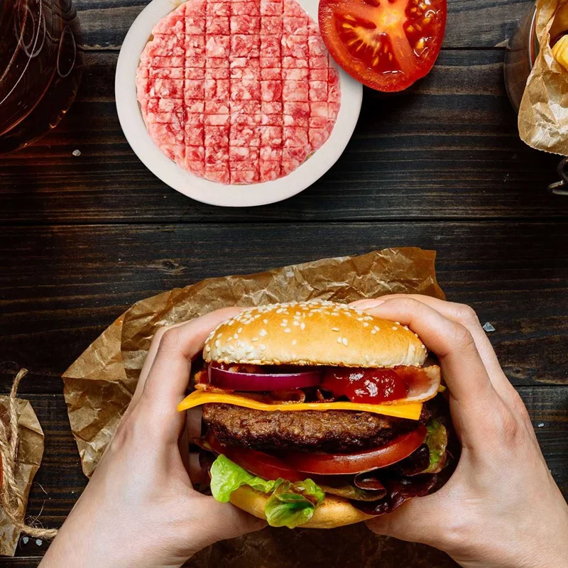 NO MORE BURGERS FALLING APART ON THE GRILL - The key to a fantastic burger is uniform size and shape. This has been challenging to achieve at home, but not anymore. Keep the pressure under control with the grip top of this hamburger press patty maker. Takes the hassle and mess out of creating your custom gourmet 6 oz burgers. Keep your hands clean and make a delicious patty in a matter of seconds.