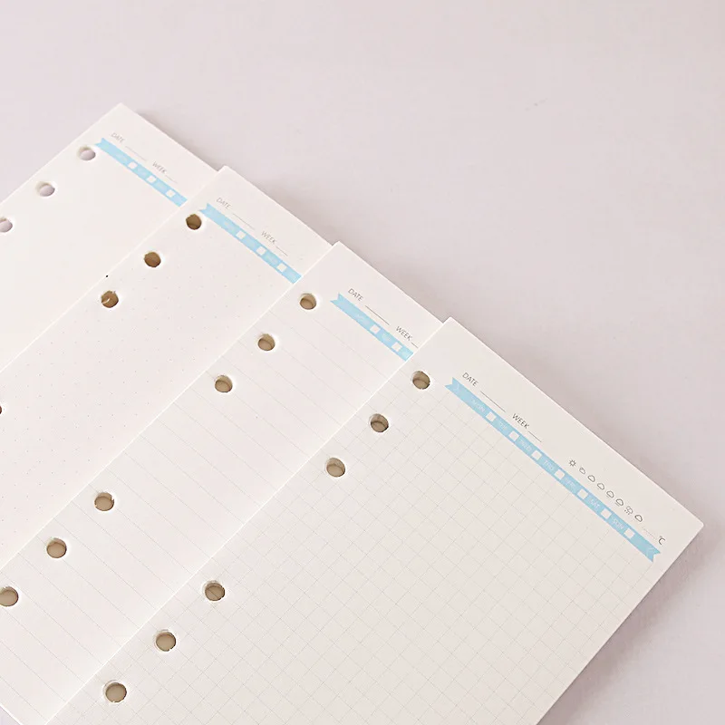 40 листов A6 бумажная заправка спиральная связывающая внутренняя страница ежедневная повестка дня блокнот наполнителя бумажный еженедельник сменный блок 6 колец
