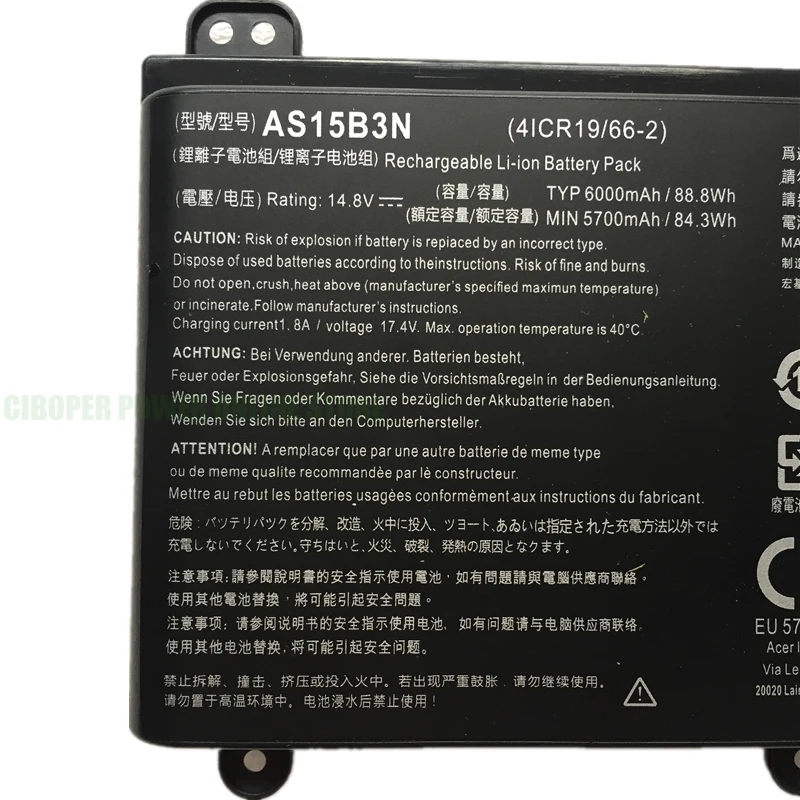 2. Мы предлагаем 1 год гарантии на все товары, вы можете купить с уверенностью.3. Все товары тщательно проверяются нашим отделом качества перед отправкой.4. Все продукты продаются в наличии, тогда мы можем убедиться, что отправим их сразу же после завершения оплаты.5. Наша компания имеет профессиональную команду технических инженеров, которая может помочь вам решить любую техническую проблему или предоставить вам любое бесплатное техническое обслуживание.CP Подлинная батарея AS15B3N 14.8V88.8Wh/ 6000mAh для хищника 17 15 G9-591-713C 17 G9-792-72S6 и хищника 21X GX21-71 17X GX-79 G5-793