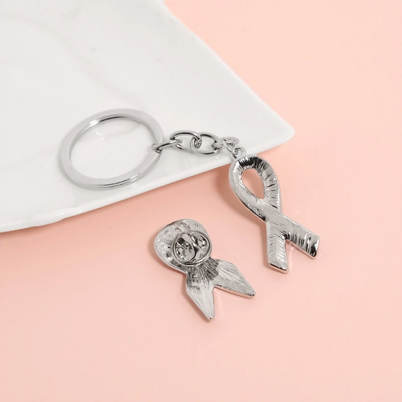 634C Cancer Awareness Brooch Pink Ribbon Charm Keychain Lapel Corsage for Clothes
