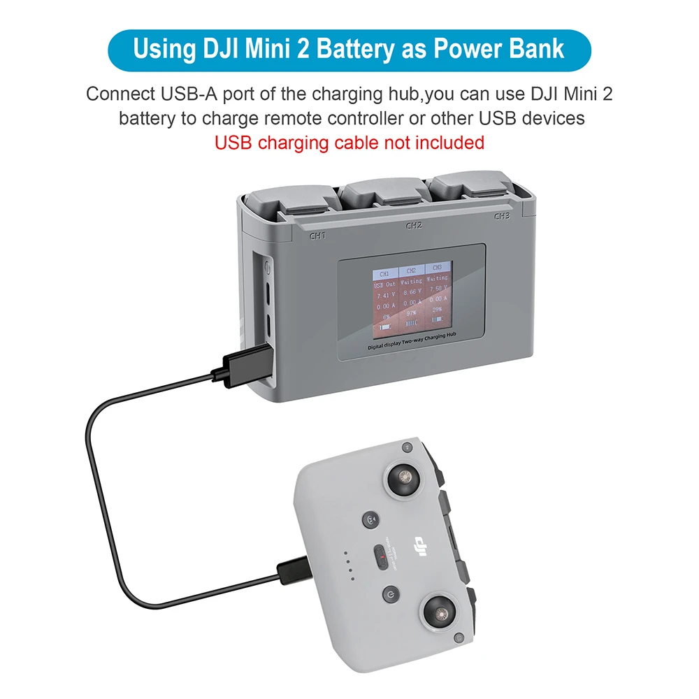 Одновременно подключайте 2 кабеля для зарядки типа c, которые поддерживают вход 5V3A или QC3.0, и это займет около 150 минут, чтобы полностью зарядить 3 батареи (50 минут каждый)