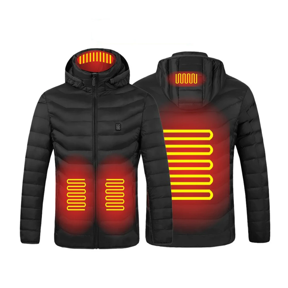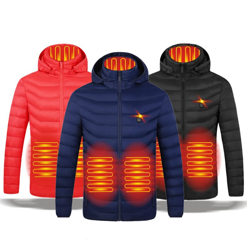 Мужские и женские куртки с подогревом, уличная жилетка, пальто с USB электрической батареей, с длинными рукавами, куртки с капюшоном, теплая зимняя теплая одежда для катания на лыжах (внешний аккумулятор не входит в комплект)