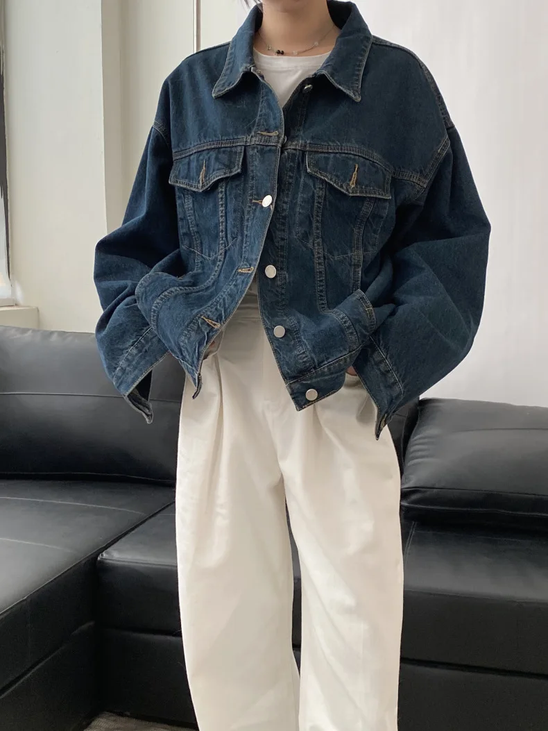 Корейская модная Осенняя уличная джинсовая куртка с эффектом потертости, однобортная блузка в стиле ретро