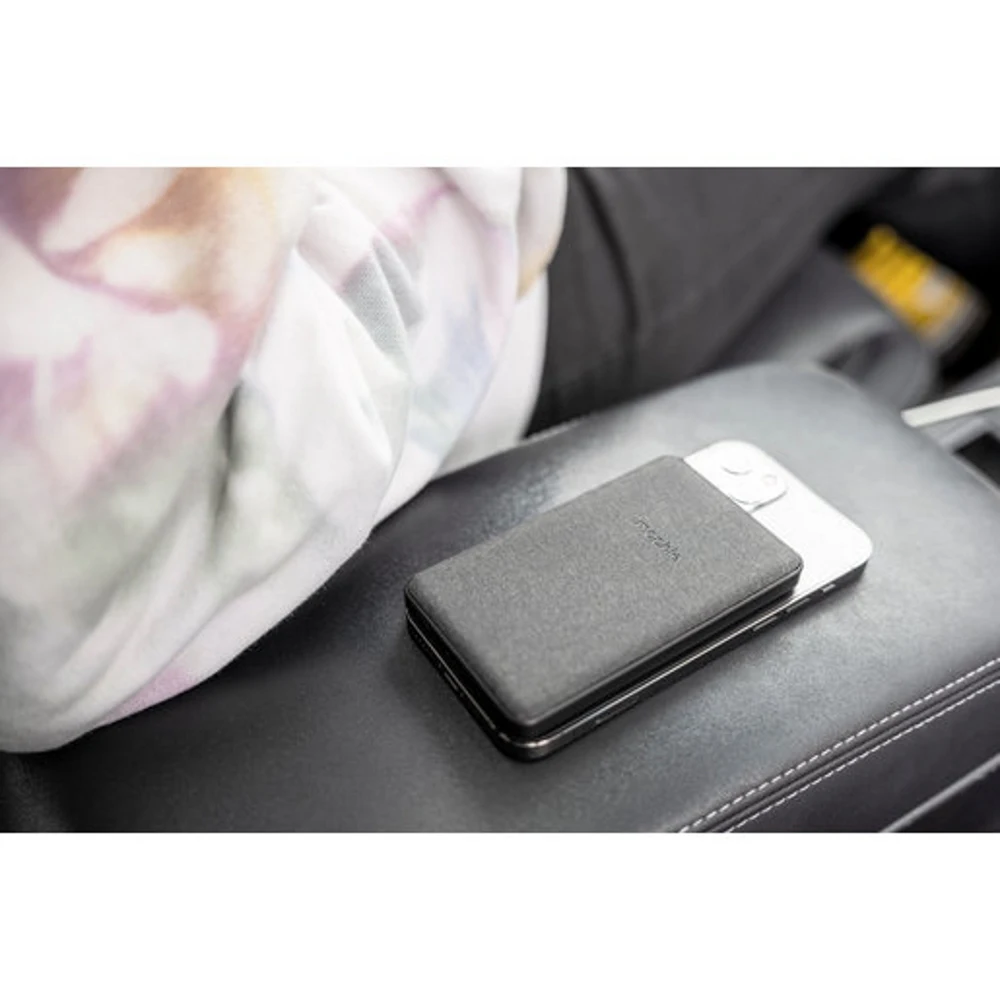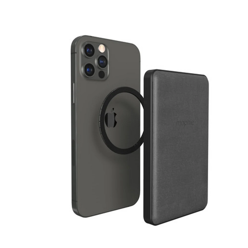 Беспроводной пауэрбанк Mophie Snap Plus Juice Pack Mini емкостью 5 000 мАч создан для комфортного ежедневного использования в дороге или дома. Он изготовлен из прочных и легких материалов, имеет минималистичный и стильный дизайн. Juice Pack Mini обеспечивает быструю проводную и беспроводную зарядку любых смартфонов: iPhone 12/13 и iPhone 12/13 Pro с MagSafe заряжаются напрямую, более ранние версии iPhone и Android-смартфоны — с помощью кольцевой магнитной накладки, которая идет в комплекте, или при подключении USB-C адаптера.
