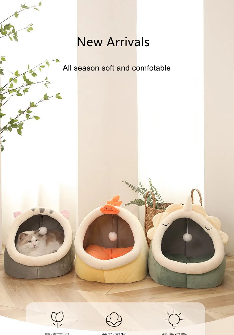 Теплая кошачья кровать, милая корзина для домашних животных, удобный котенок, кресло, подушка, палатка, съемная и моющаяся, круглая собака, зимняя пещера
