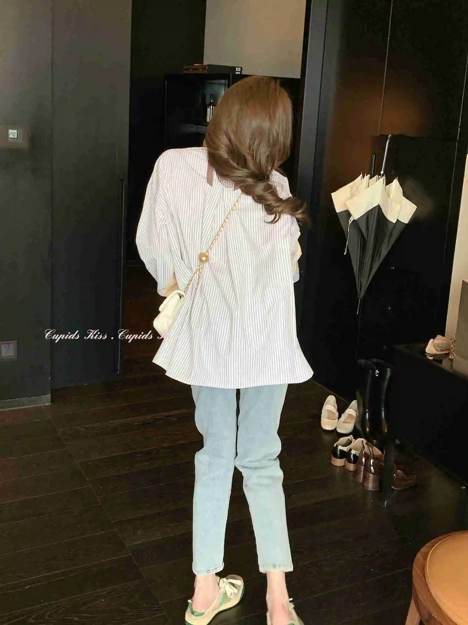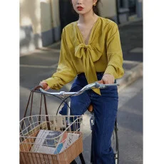 Выбить белое французкое столовое кресло из атмосфера, свободные длинные рукава рубашка с завязками, Женский меньшинств шикарный сексуальный топ 2021 в Корейском стиле