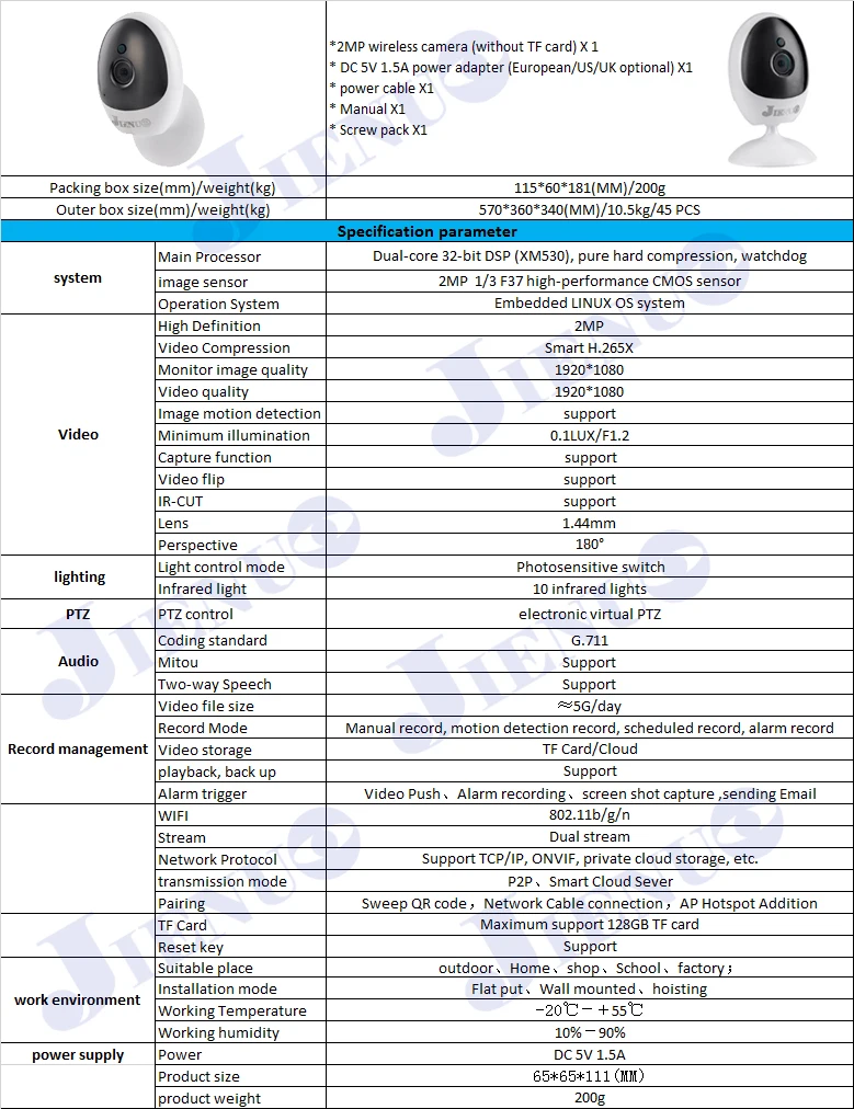 Смотрите все в деталях с помощью true HD. Получите более четкие и чёткие изображения/видео, чем другие ip-камеры wifi. С исключительным ночным видением вы можете четко видеть даже в темноте. Днем или ночью, на открытом воздухе или в помещении, JIENUO не перестанет защищать вас. Вы также можете проверить, есть ли у вашего ребенка сладкий сон ночью на ваших мобильных телефонах