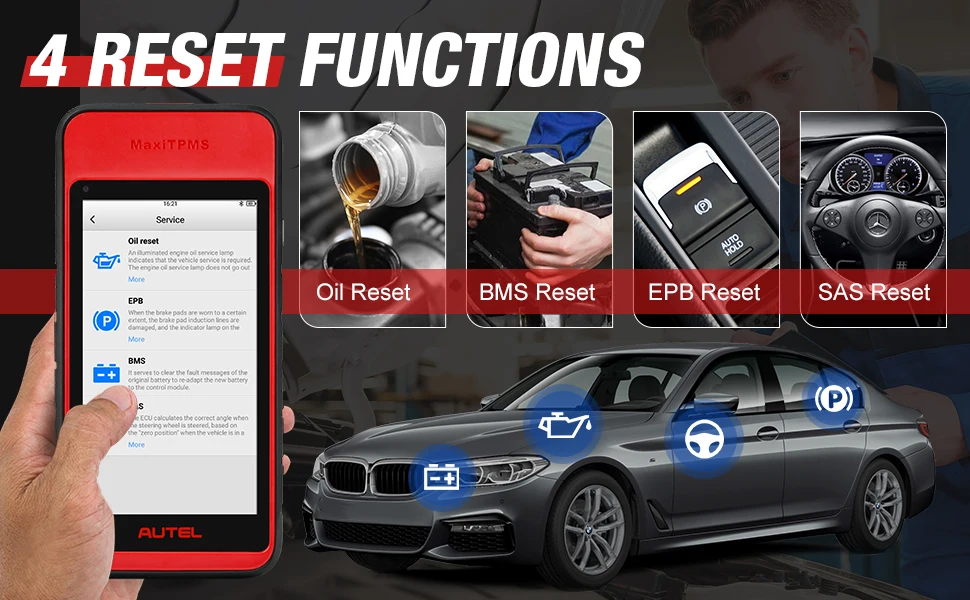 Сброс EPB:Поддерживать электронную тормозную систему безопасно и эффективно, деактивируя и активируя тормозную систему управления, устанавливая тормоза после замены диска или колодки и т. д.
