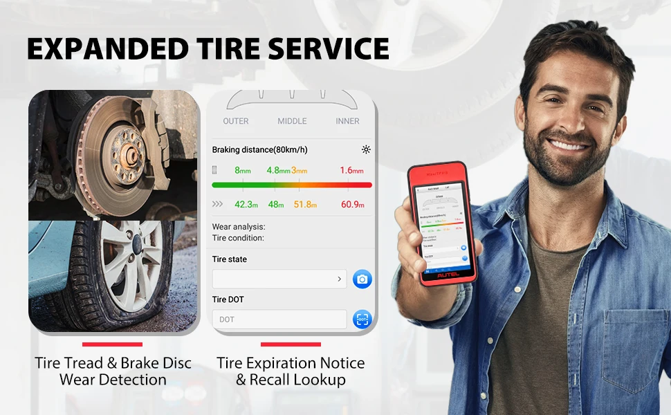 • Точное Лазерное Измерение глубины протектора и износа тормозных дисков при покупке Autel TBE100/TBE200