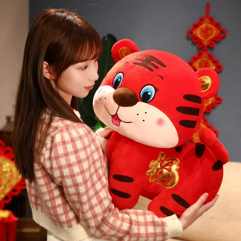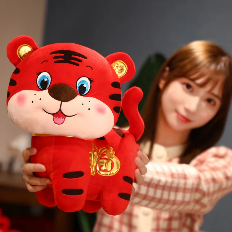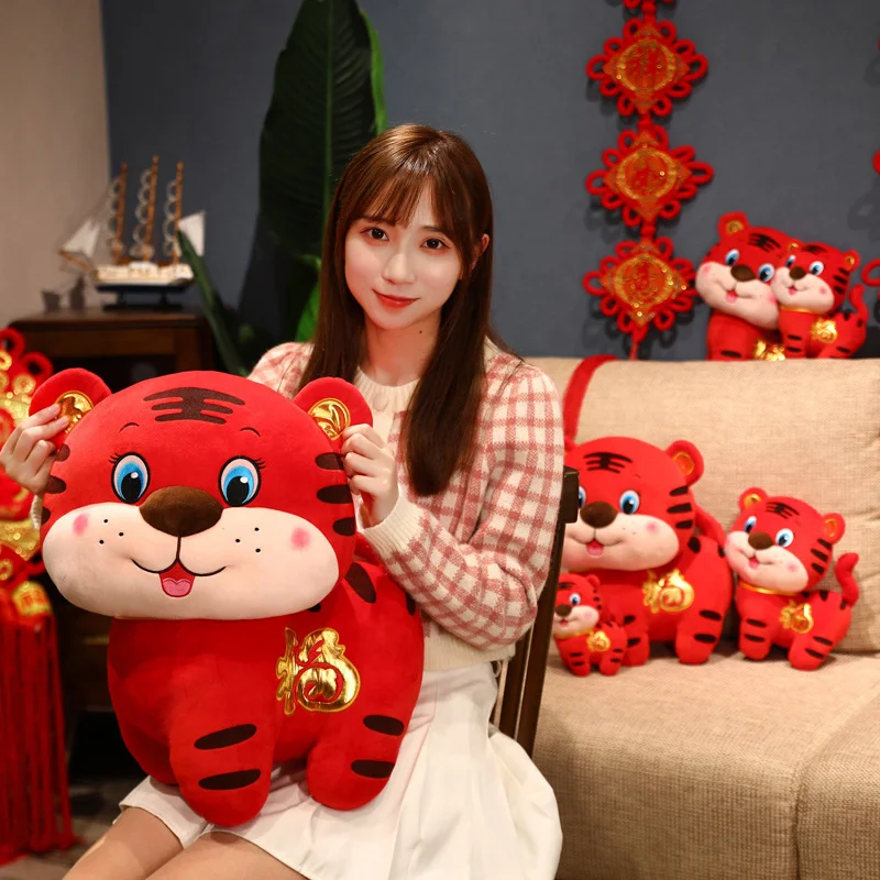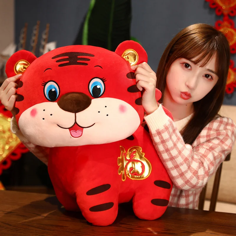 2022 новогодний Счастливый тигр, Знак зодиака, тигр, плюшевые игрушки, милый фу тигр, талисман, домашняя кровать, Декор, плюшевая кукла, набитая для детей, подарок