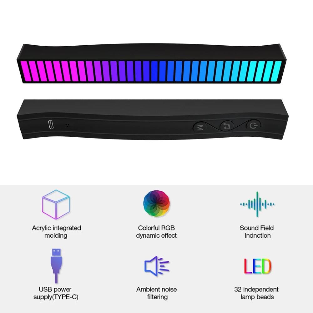 Волшебная музыкальная лампа для пикапа RGB со звуковым управлением принимает корпус из АБС-пластика, а внутри используются 32 красочные лампы, которые сочетаются с микрофоном, предназначенным для музыки для реализации динамической музыки и звукового поля. Встроенный аккумулятор большой емкости, который может использоваться после запуска.