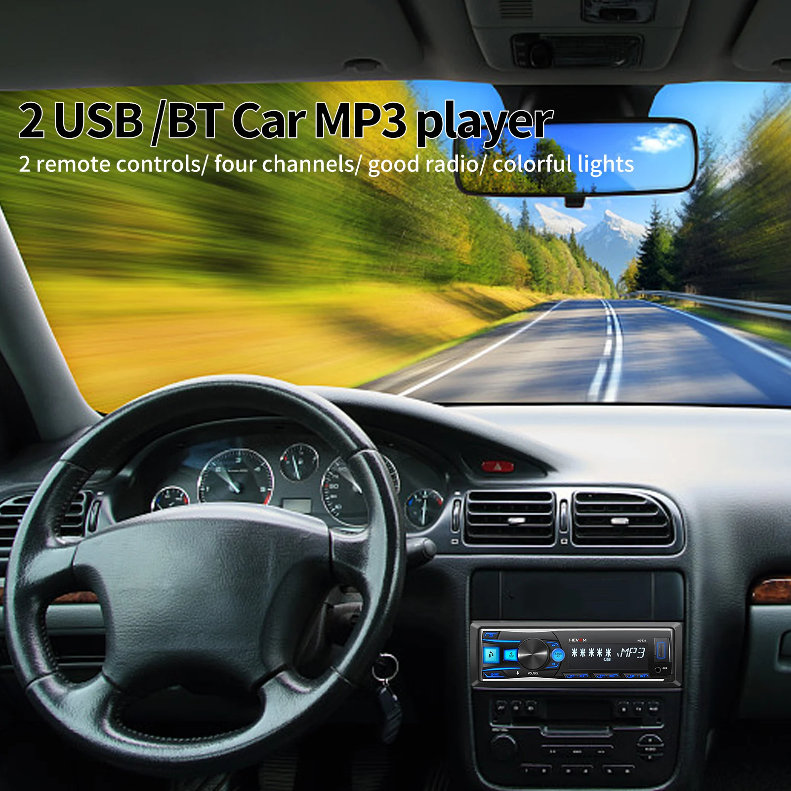 Воспроизведение MP3 поддерживает пауза/предварительный просмотр/повтор/случайное воспроизведение и выбор вверх/вниз 10 треков; Электронный басовый/тройной/левый и правый баланс/контроль громкости переднего и заднего баланса; 1переднее отверстие для аудиовхода AUX и задний разъем L/R аудио RCA выходное отверстие; 4-канальный выход высокой мощности (4 колонки высокой мощности) Двойная зарядка USB, Опциональная функция приложения, высококачественная большая материнская плата. Перезаряжаемый USB, Встроенный микрофон Bt +, поддержка громкой связи и расширенный режим передачи звука, поддержка индикации часов во время выключения питания.