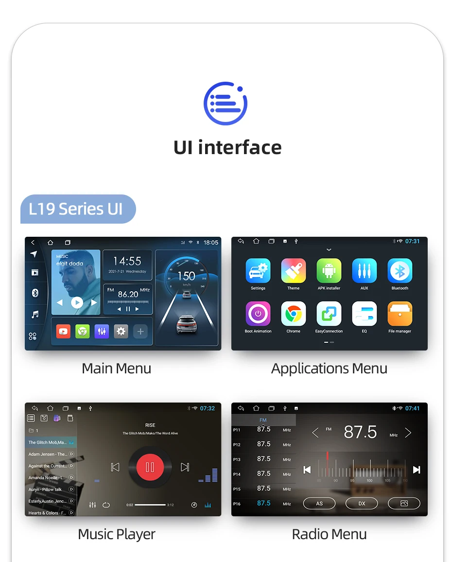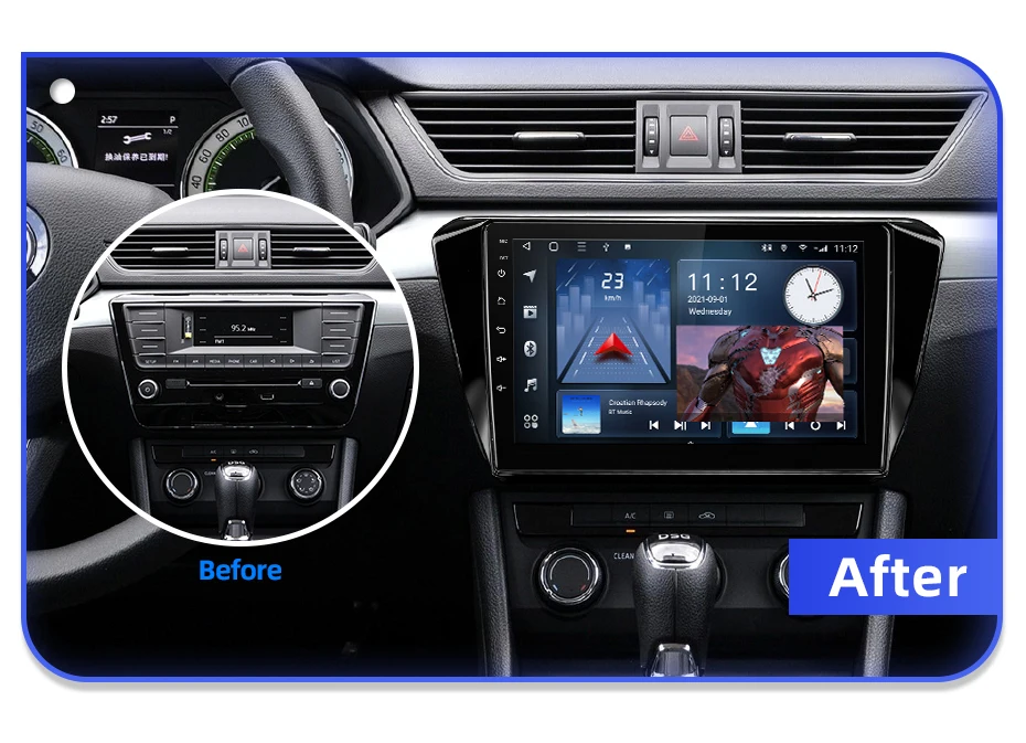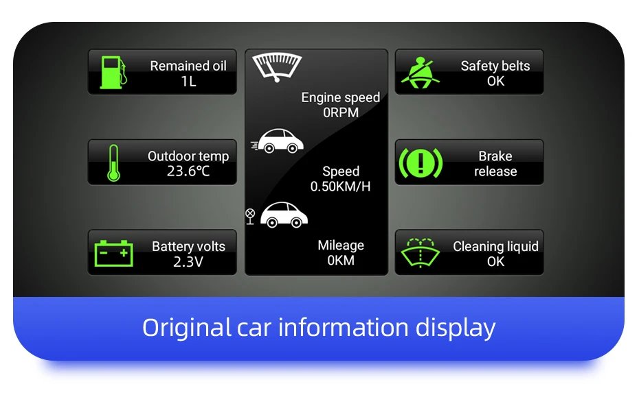 1. С декодером Canbus, поддержкой рулевого колеса и оригинальным автомобильным информационным дисплеем.
