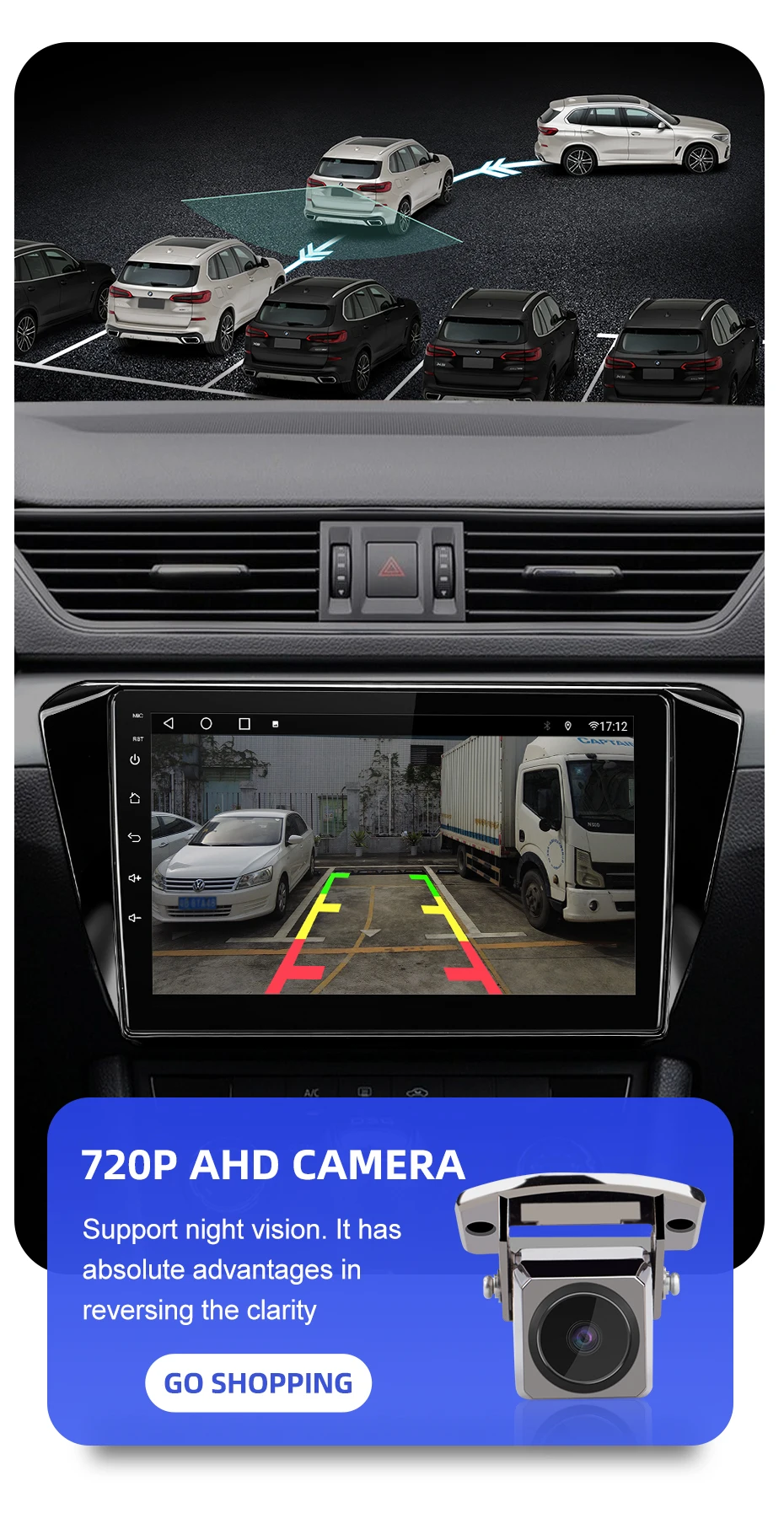 Поддержка камеры заднего вида 720P AHD. Изображение более четкое. (Камера в комплект не входит)