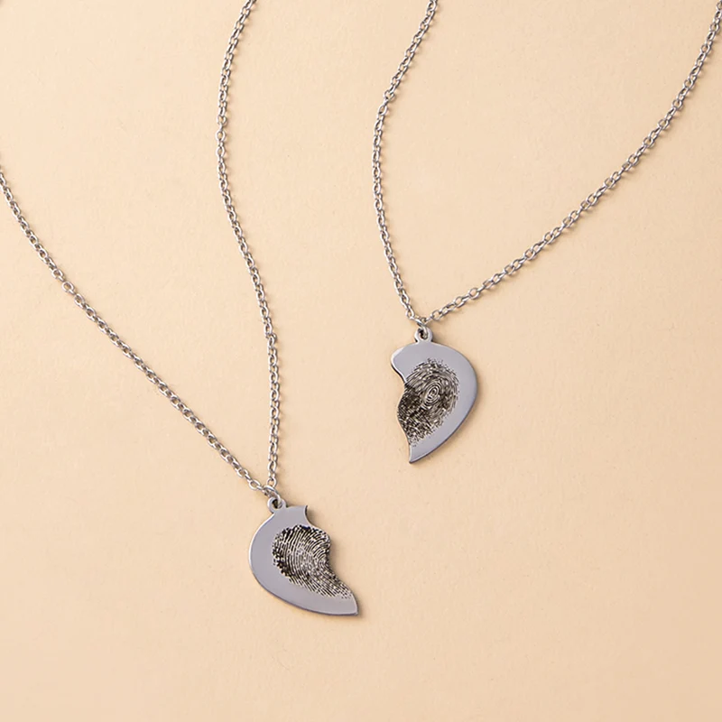 2 шт./компл. креативный отпечаток пальца подвеска в виде разбитого сердца ID ожерелье хип-хоп из нержавеющей стали пара ожерелья ювелирные изделия подарок