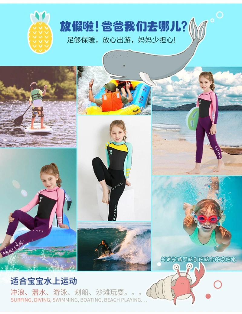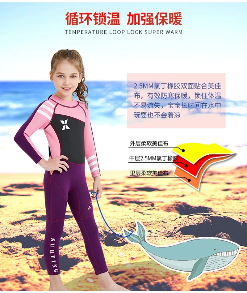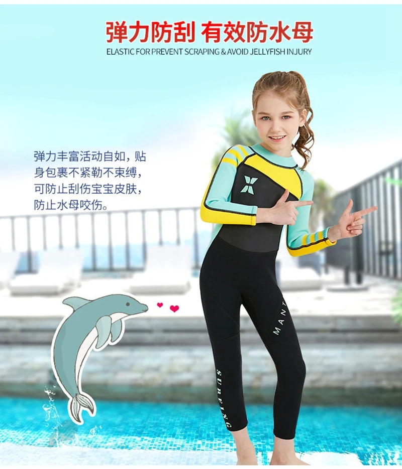 2,5 мм неопрена гидрокостюм для серфинга водолазный костюм детское нижнее белье для девочек, сохраняющие тепло, цельнокроеное платье с длинными рукавами и защитой от ультрафиолетового излучения, Skin купальный костюм