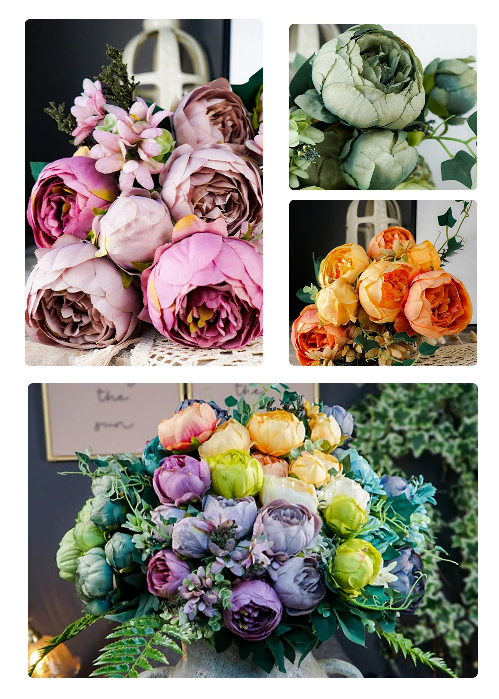 2. Цветочная головка и Листья установлены вручную, радует установить их обратно, если они падают. Мы оставляем достаточно длины для цветочных веток, чтобы облегчить ваше расположение, поэтому для нескольких предметов, так как цветочные стебли слишком длинные, нам нужно согнуть их, чтобы посылка. Это не повлияет на внешний вид. Вы можете выпрямить или отрезать/согнуть дополнительную часть веток в соответствии с размером вашей вазы.
