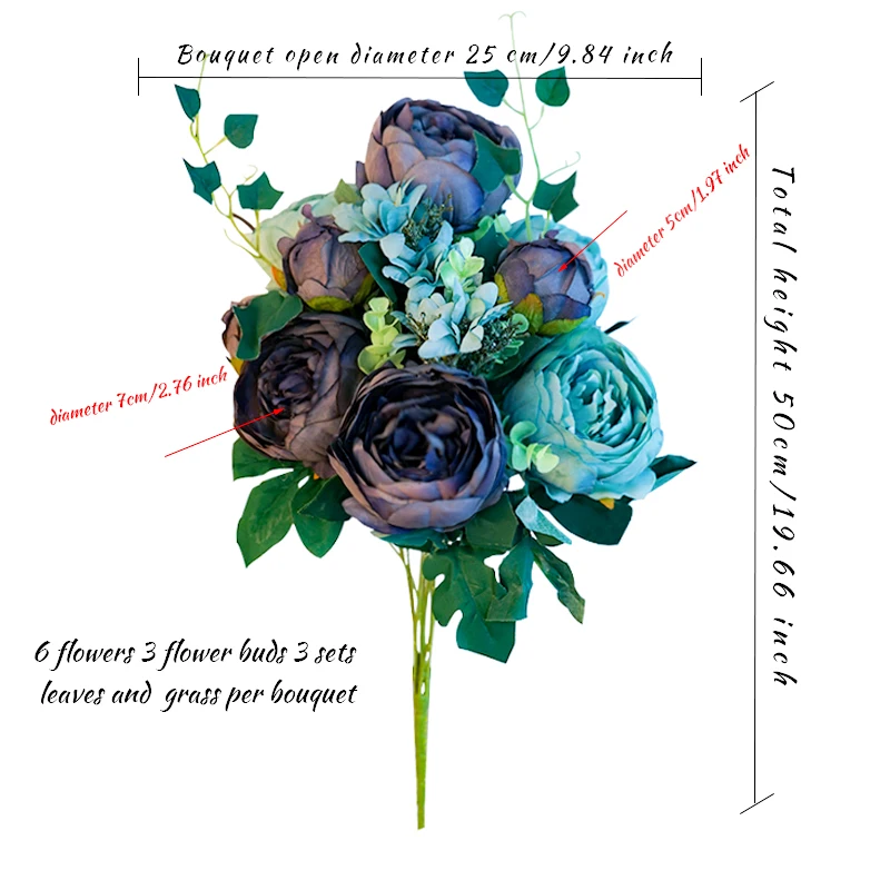 Измерение/Размер (прибл.):Общая длина: 64 см/25,2 дюйма, открытый цветок диаметр: 15 см/5,91 дюймов, c бутоном цветка диаметр: 6 см/2,36 дюймов