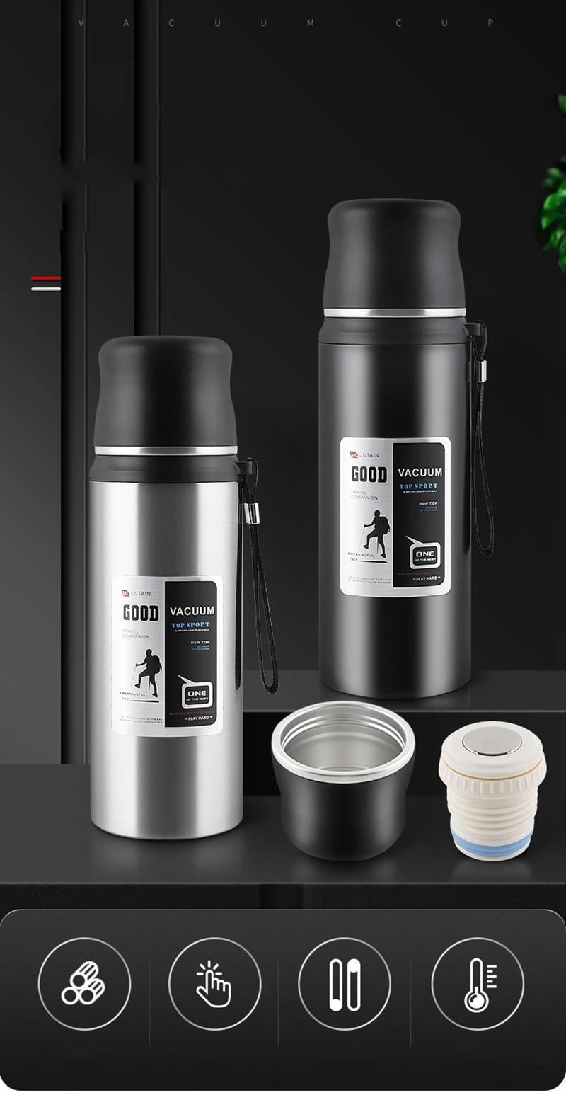 Долгое время для удержания температуры: с двухслойной изоляцией. Эта бутылка для воды из нержавеющей стали имеет двойную изоляционную стену, которая оптимально сохраняет температуру горячей и холодной. Держите жидкость горячей до 12 часов и холодной до 24 часов.