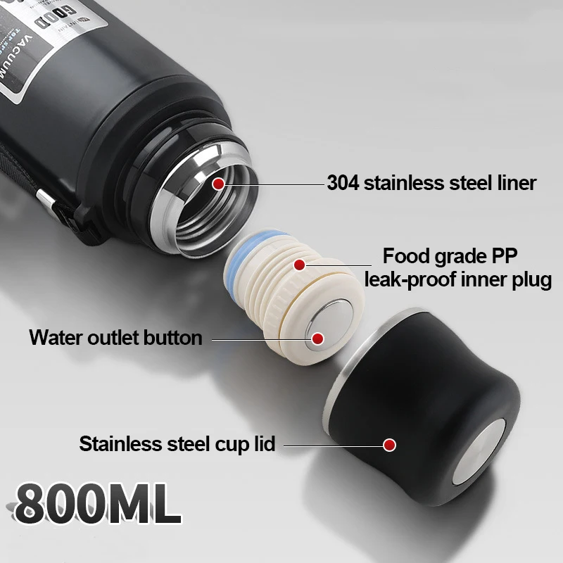 Двухстенный 304 термос из нержавеющей стали, бутылка для воды, термосы, кофейная чашка, портативный спортивный вакуумный термос, большая емкость 800 мл