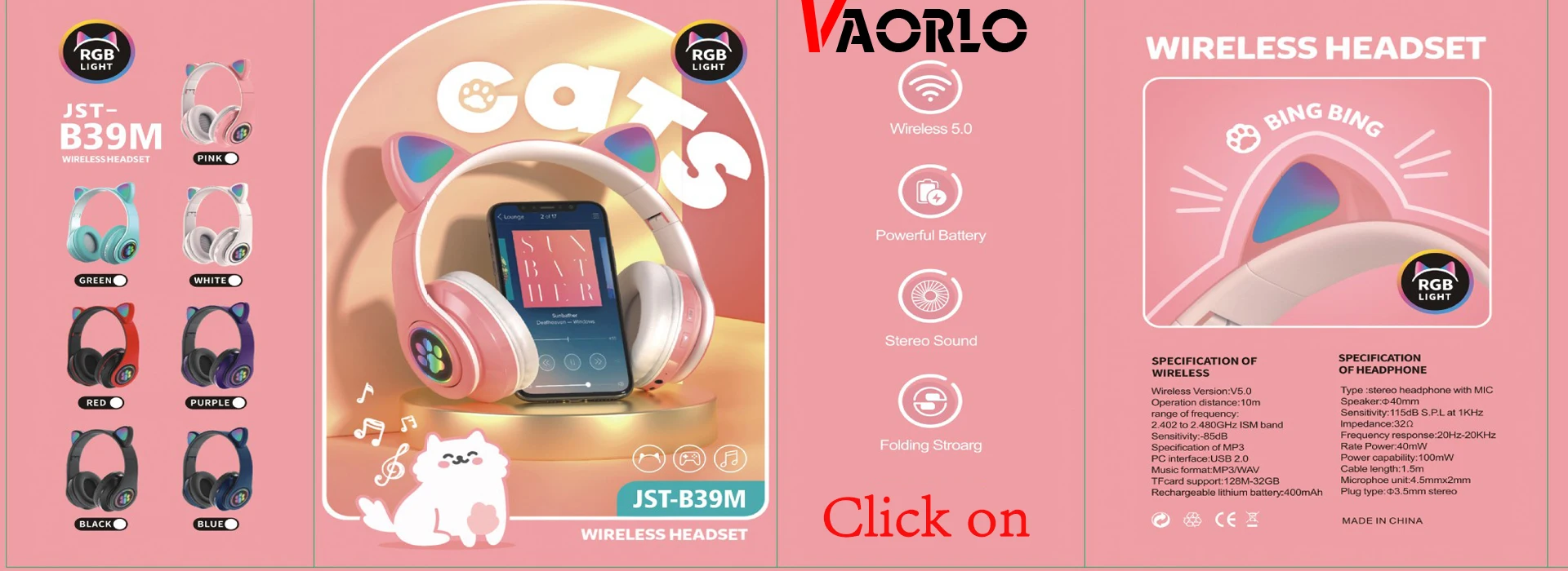 10. Радужные цветные наушники "Кошка", детские наушники в подарок на праздник.