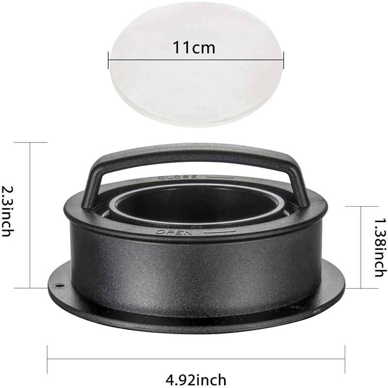 Size: hamburger press 12.5x12.5x6cm, silicone oil paper diameter 11cm