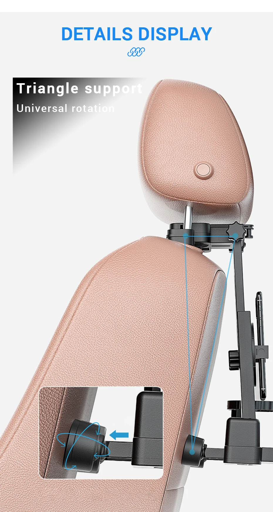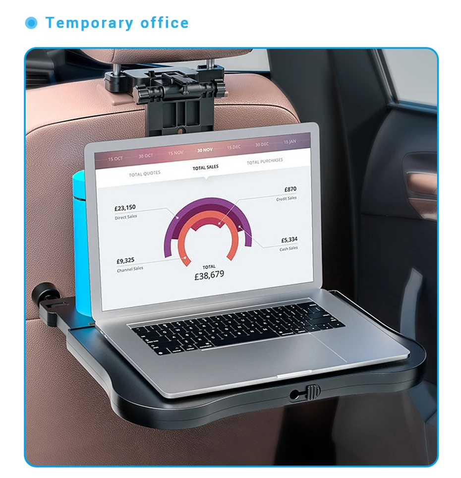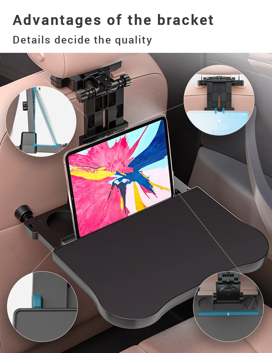 🚗【How to adjust the table】:①The table can be pulled off the buckle and fixed on the headrest; ②The table has slide rails that can slide down, and the fulcrum is raised to support the seat; ③The mobile phone can be placed in the mobile phone holder, which can be adjusted horizontally and vertically; ④The table has two cups Hold the cup; ⑤ Pull out the table, you can put laptops, tablets, books, food, etc.