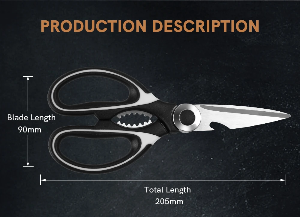 Универсальный: Наши кухонные ножницы безупречно выполняют все основные кухонные задачи, такие как резка птицы, резка мяса, курица, кости птицы, овощи, рыба, травы, пицца и многое другое. Подходит для кухонь, ремесел, садоводства и т. д.