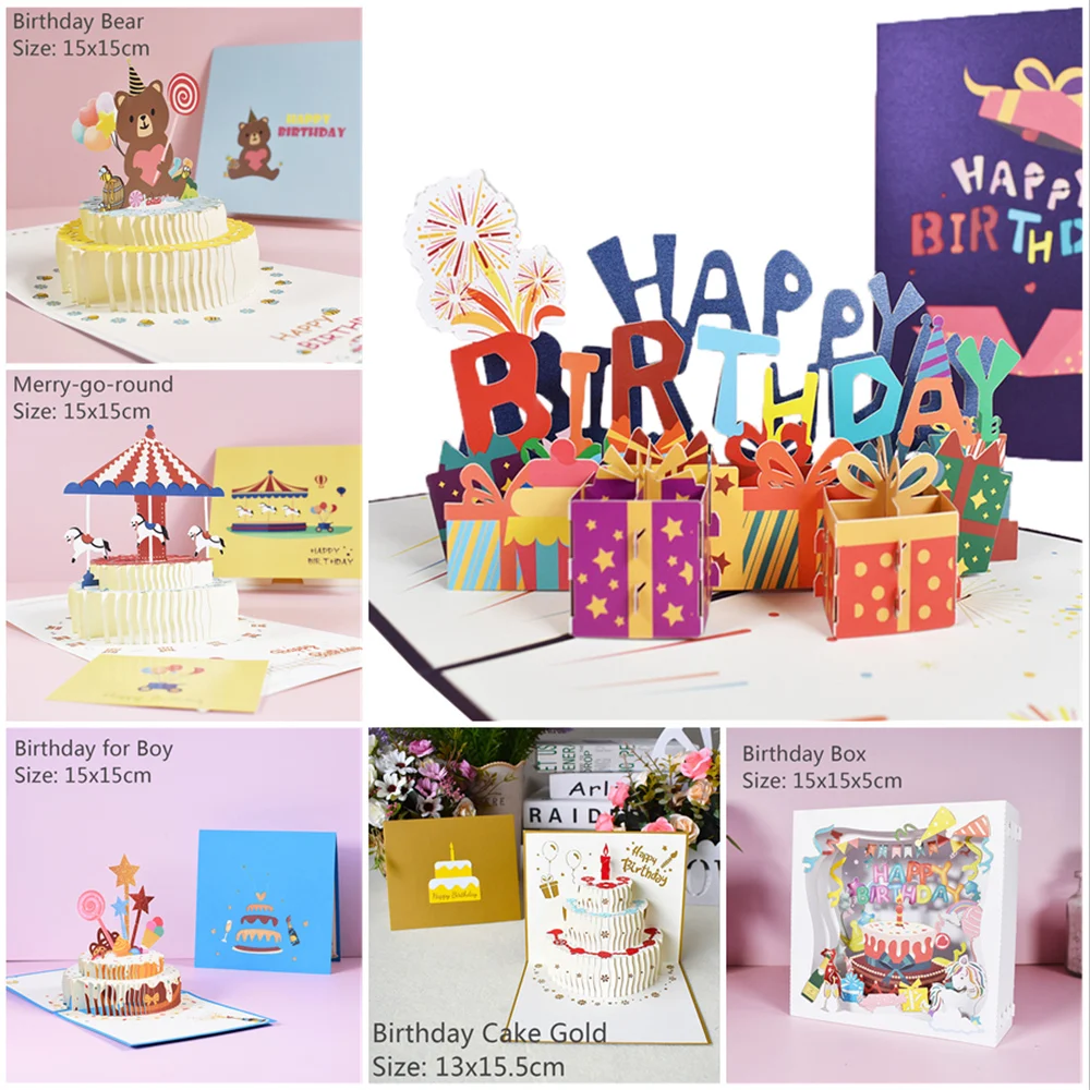Открытка на день рождения для мальчика, дети, жена, муж, 3D торт на день рождения, всплывающие поздравительные открытки, открытки на Рождество, Новый Год, подарки с конвертом