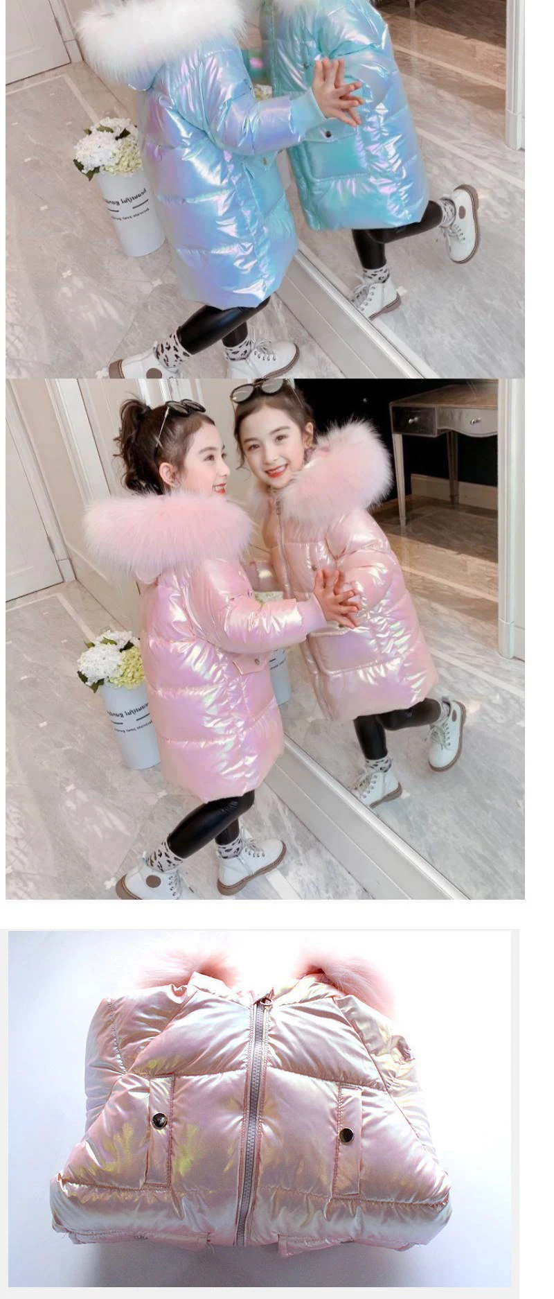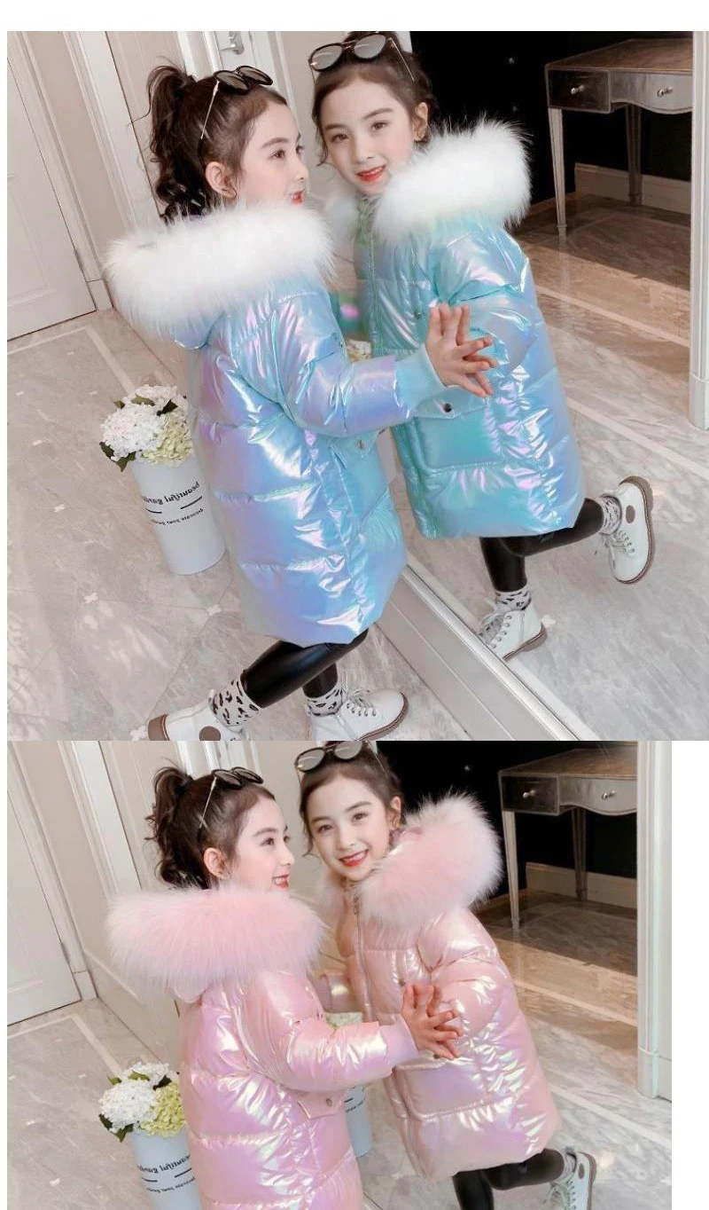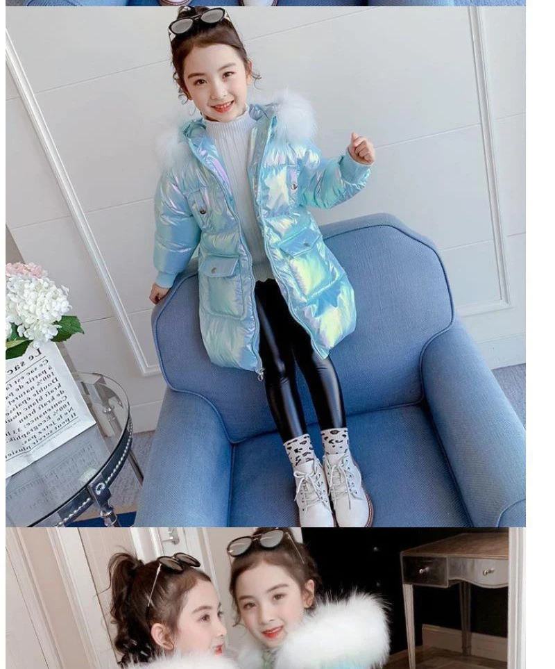 Зимний пуховик для девочек; Пальто с капюшоном; Верхняя одежда; Блестящие теплые наряды для девочек-подростков; Детская одежда