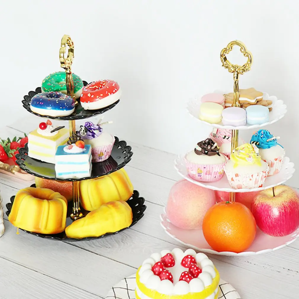 3 Уровня подставка для торта свадебные тарелки вечерние столовые приборы посуда для выпечки послеобеденный чай пластиковый лоток для кексов витрина для торта декоративные стенды
