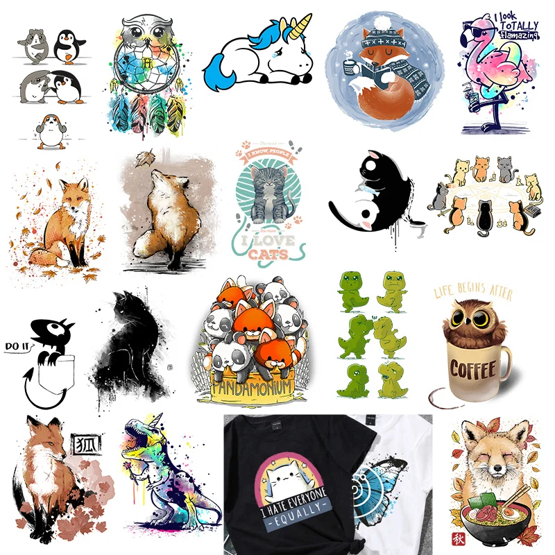 Железная Бабочка динозавр собака нашивки с совой для одежды DIY Футболка аппликация животное теплопередача виниловые наклейки термопресс