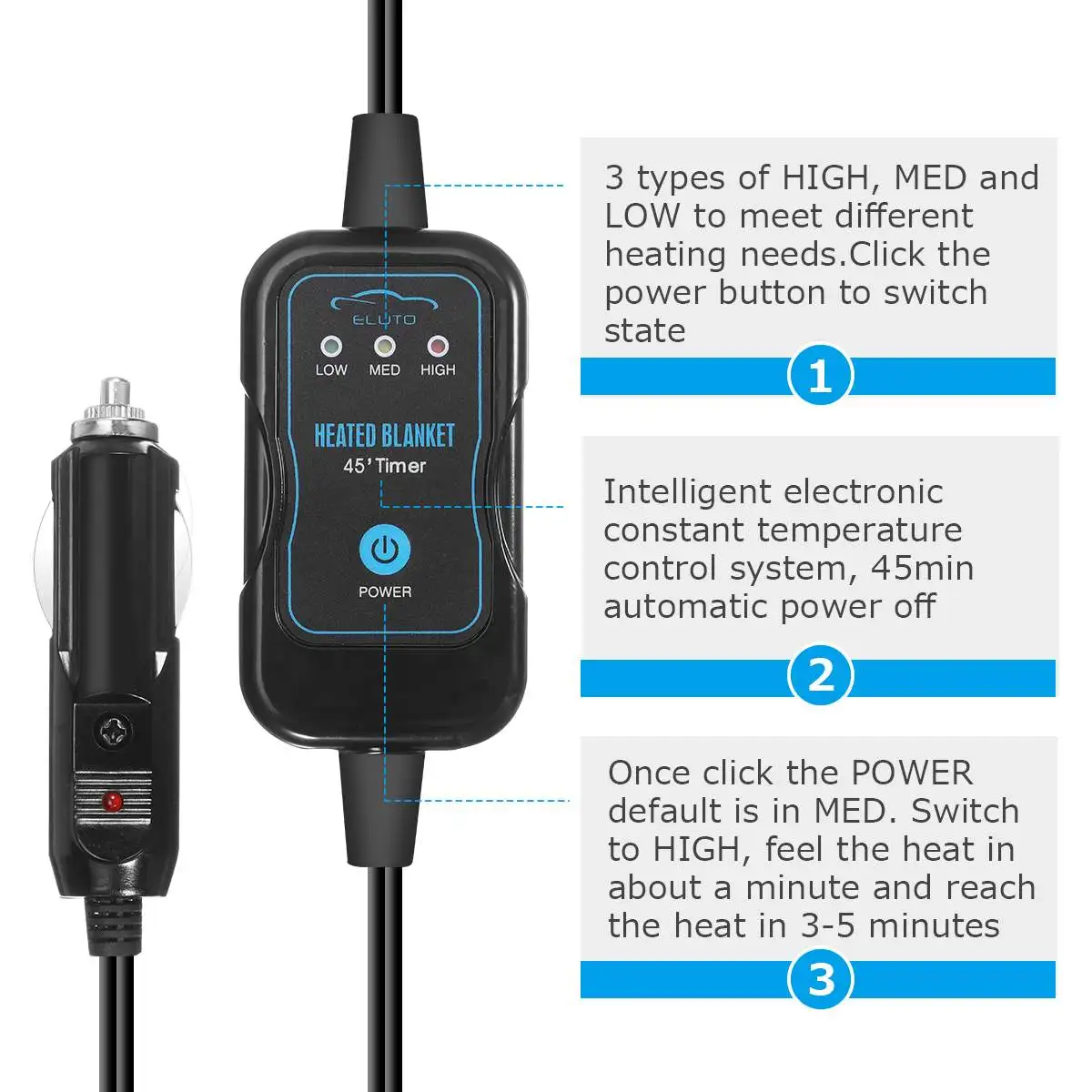 Шнур питания подключается непосредственно в, грузовик, внедорожник или RV 12 Вольт прикуривателя или розетки. 3 типа высоких, средних и низких для удовлетворения различных потребностей.
