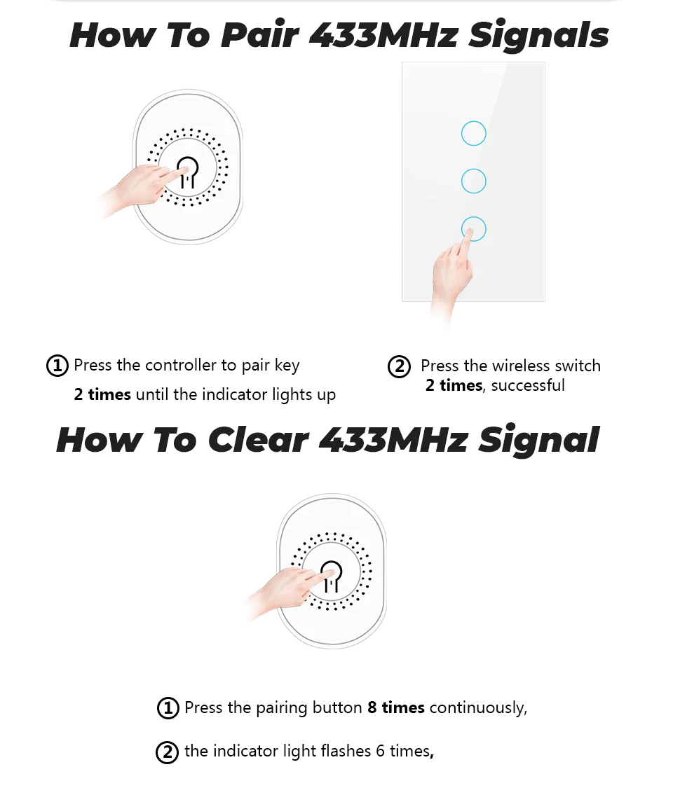 2.WIFI + 433: он может управляться через приложение tuya, голосовой динамик, и может управляться беспроводным переключателем и пультом дистанционного управления, что более удобно