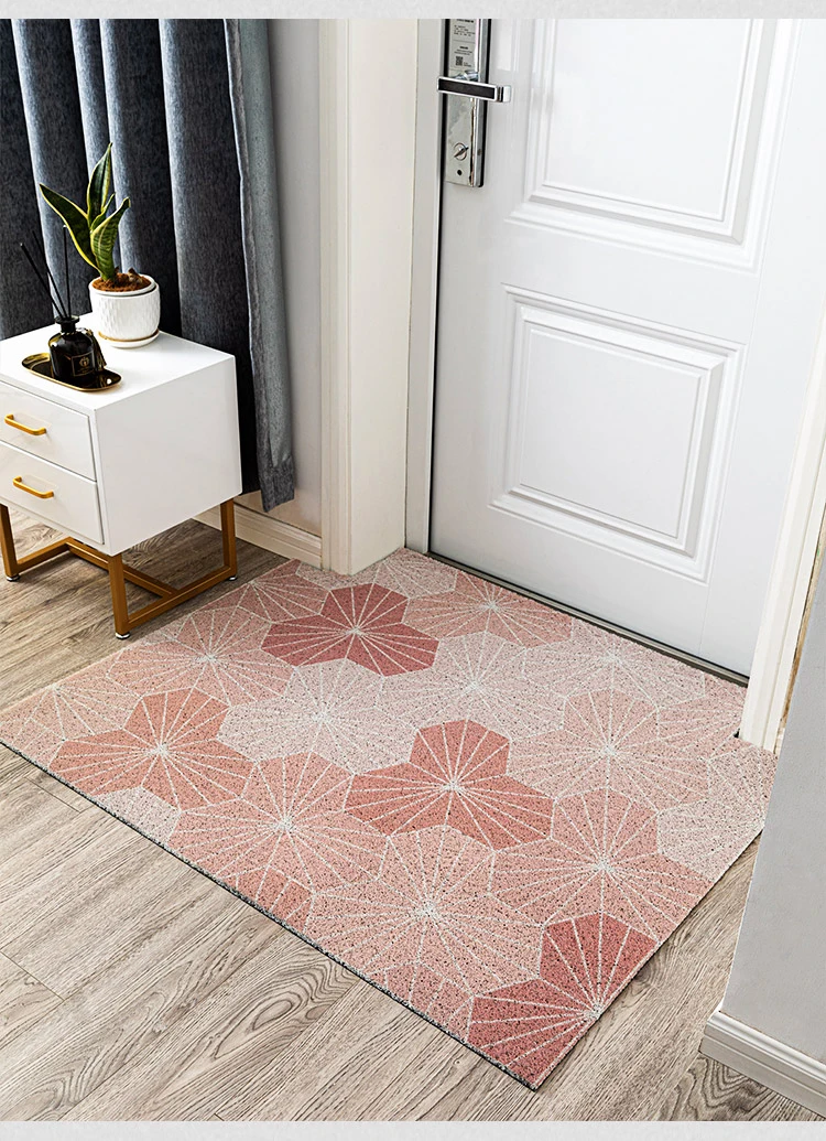 Коврик из ПВХ с шелковой петлей может предотвратить скольжение и защитить вашу безопасность, он может поглощать влагу из вашей обуви, чтобы сделать пол чистым и сухим, а также очистить от пыли, грязи, снега, И т. д.