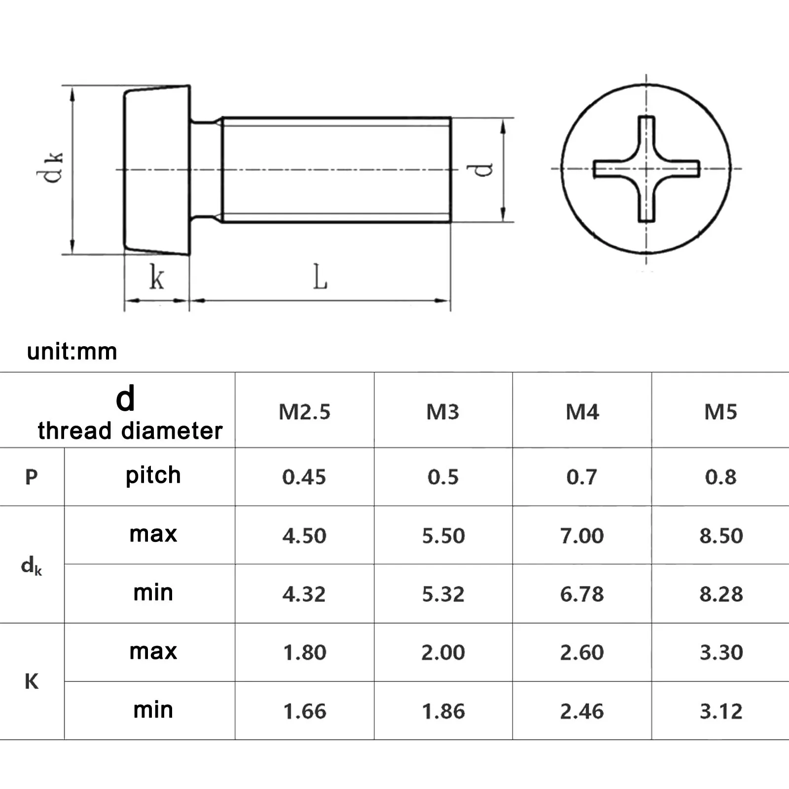 0,45 мм (M2.5) /0,5 мм (M3) /0,7 мм (M4) /0,8 мм (M5) / 1 мм (M6)