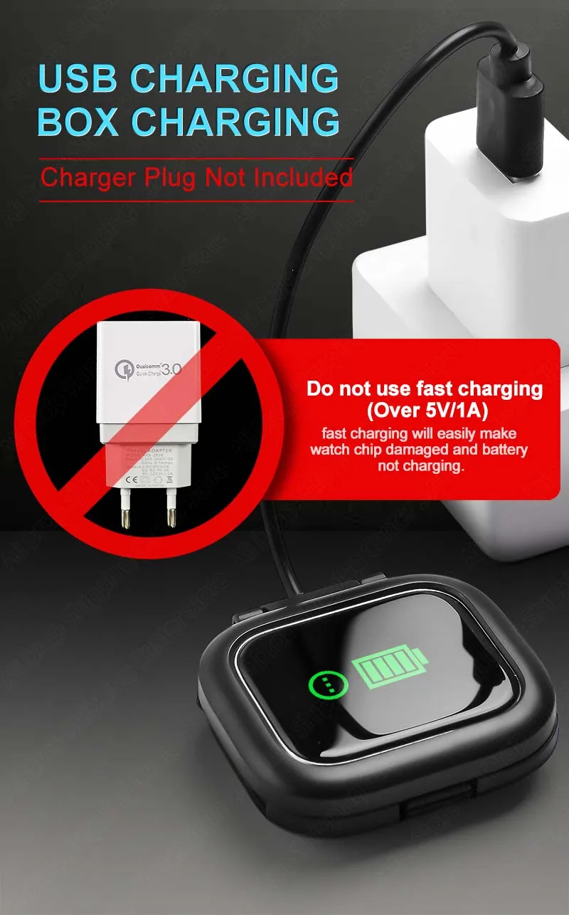 3. При первом использовании, пожалуйста, зарядите его как минимум на полчаса. Часы могут быть полностью отключены после длительного времени доставки.