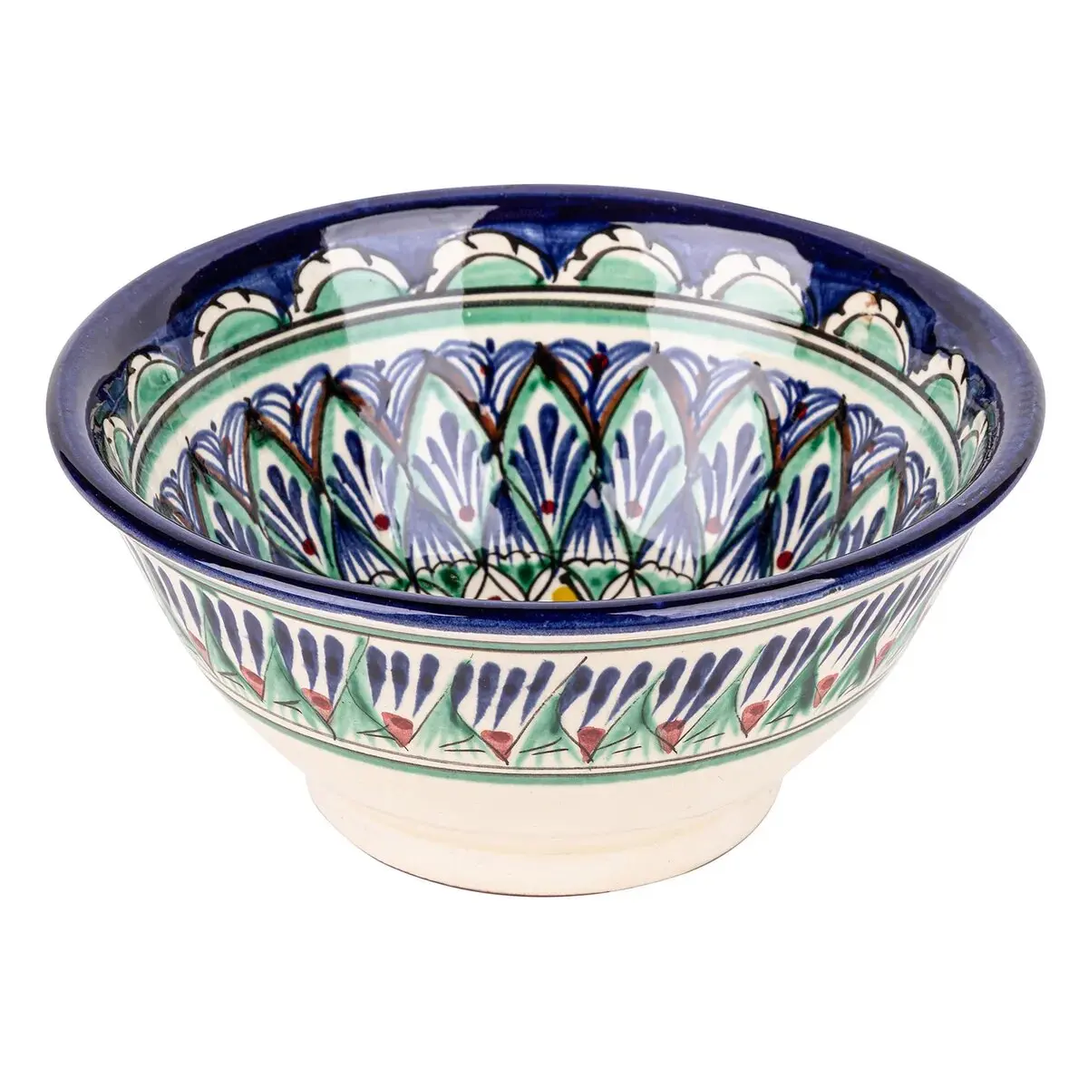 Набор глубоких тарелок (коса большая) 6шт ручной работы Риштан синий.