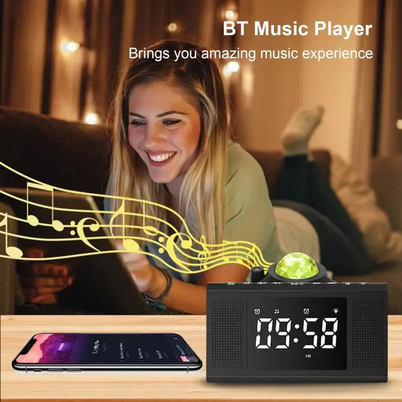 1. Светильник со звездами и часы, а также Bluetooth-СовместимостьДинамиков, для достижения различных функций в одном, что делает продукт более функциональным, добавляя развлечения, создавая мечтательную атмосферу звездного неба.