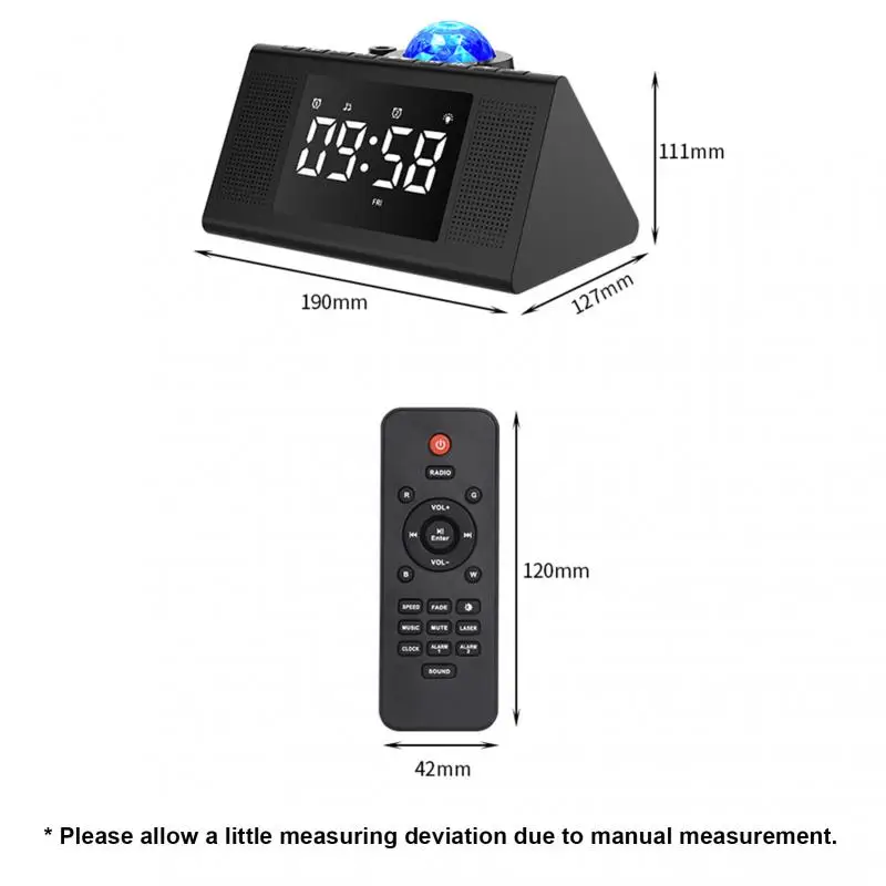 2. Продукт может использовать пульт дистанционного управления для установки часов, будильника и выбора fm-радиостанции, чтобы сделать более простым, удобным и интуитивно понятным, устраняя необходимость установки кнопки сложного.
