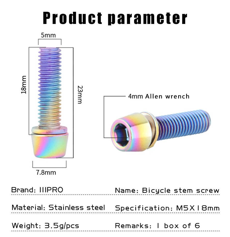 Велосипедный винт для руля из нержавеющей стали цветной винт M5 * 18 мм велосипедный винт для руля m6x18 мм Велосипедный тормозной винт