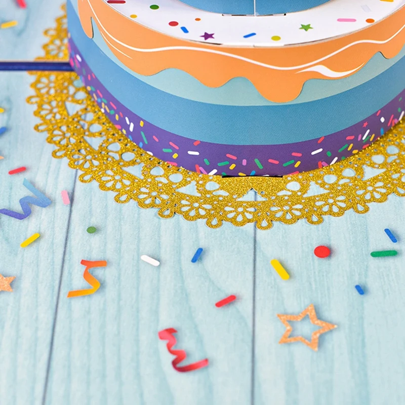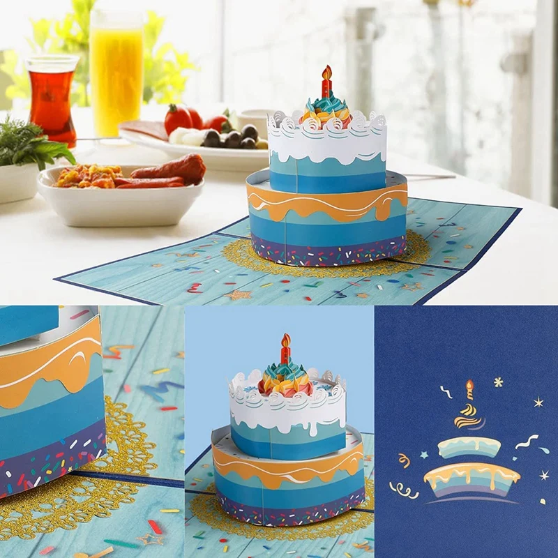 Открытка на день рождения с сюрпризом: эффект сюрприза 3d-карт на день рождения намного лучше, чем у традиционной старомодной открытки на день рождения. Когда карта открывается, она автоматически появляется как красивый синий трехмерный двойной торт, что приносит вам большой сюрприз для главного героя вечерние.