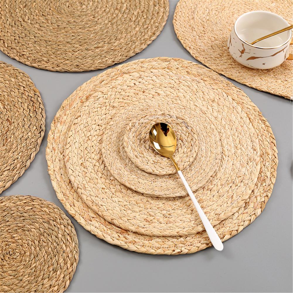 Коврик для кухонного стола из кукурузы и травы ручной работы, круглый коврик для подстаканников, теплоизоляционный коврик, аксессуары для украшения стола