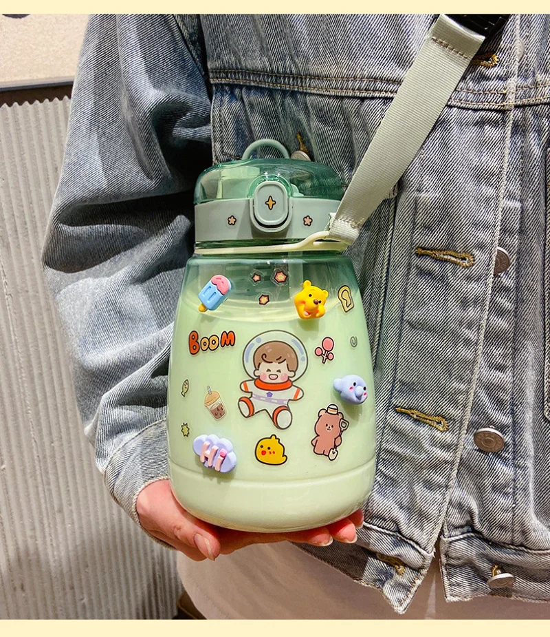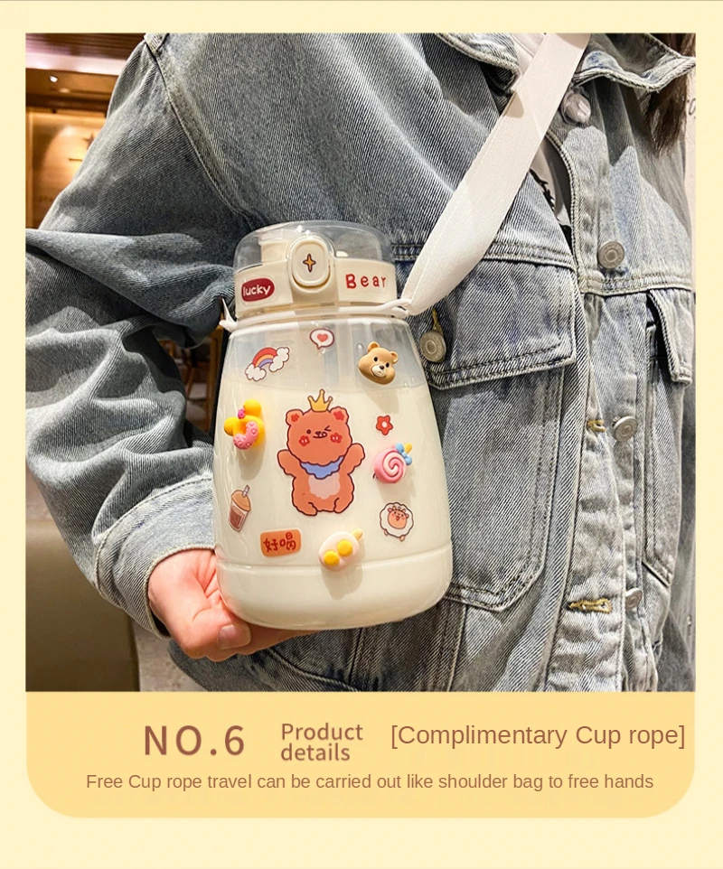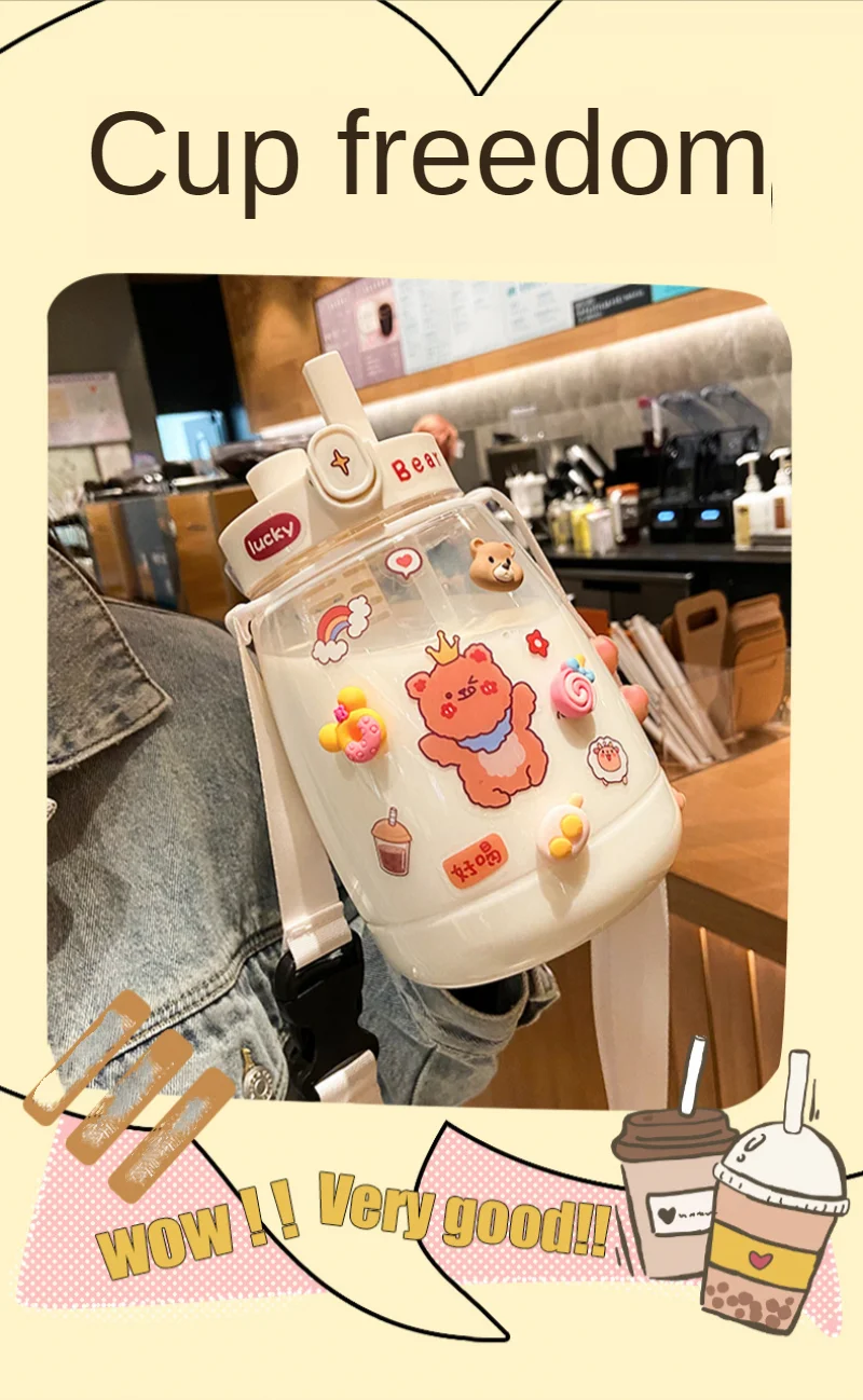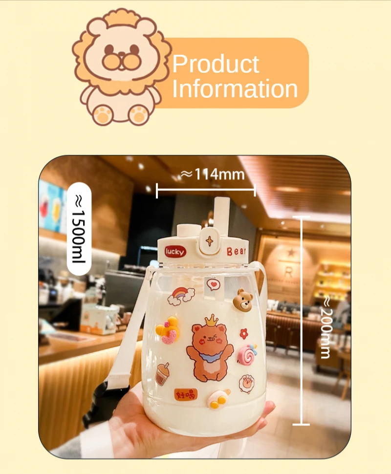 1,5л бутылка для воды с большим животом с соломой 3D портативные наклейки шейкер бутылка для женщин девочек Летняя Милая соломенная чашка анти-осень