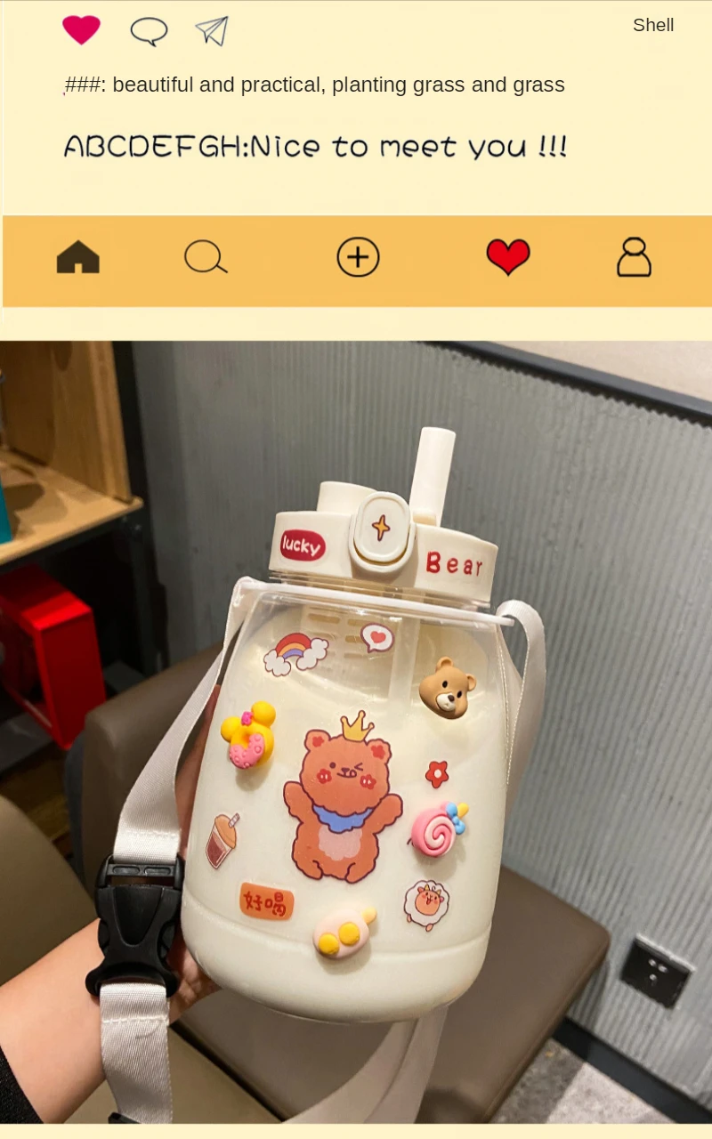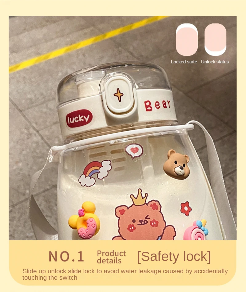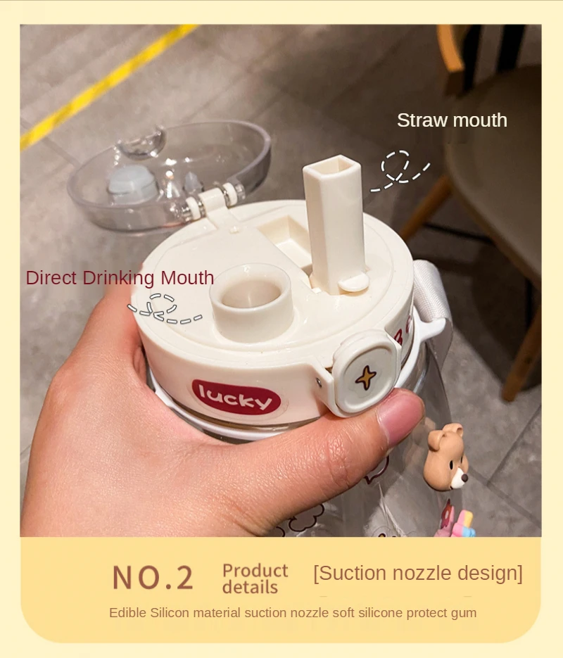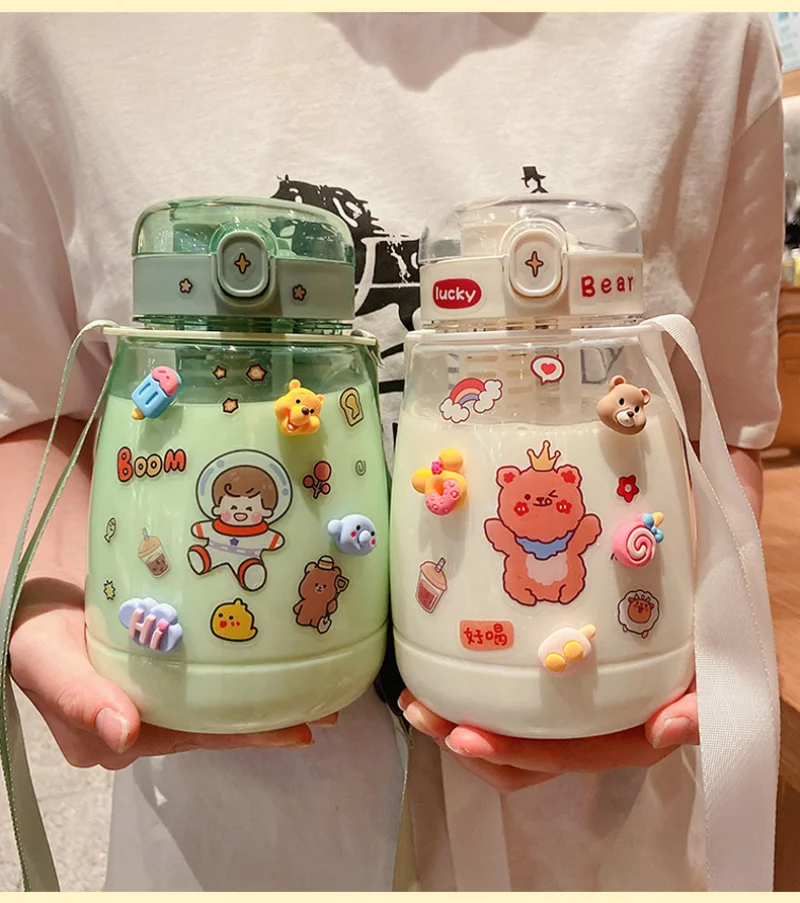 1,5л бутылка для воды с большим животом с соломой 3D портативные наклейки шейкер бутылка для женщин девочек Летняя Милая соломенная чашка анти-осень