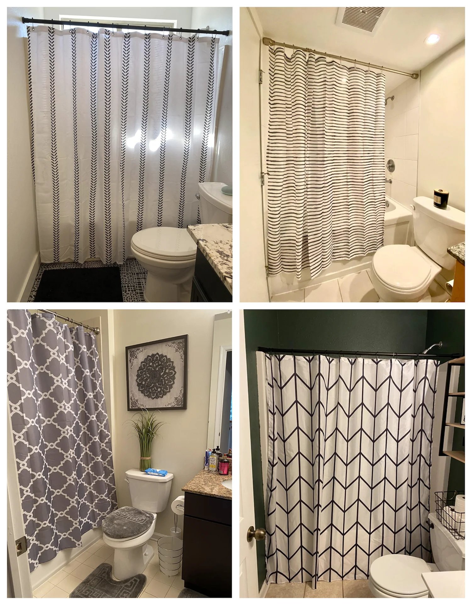 1. Стандартный размер точно подходит для большинства ванн и душевых киосков. Включает в себя Бесплатные Крючки и легко устанавливается и скользит. Каждая занавеска для душа имеет нержавеющие металлические прокладки, они могут держать до ежедневного использования.