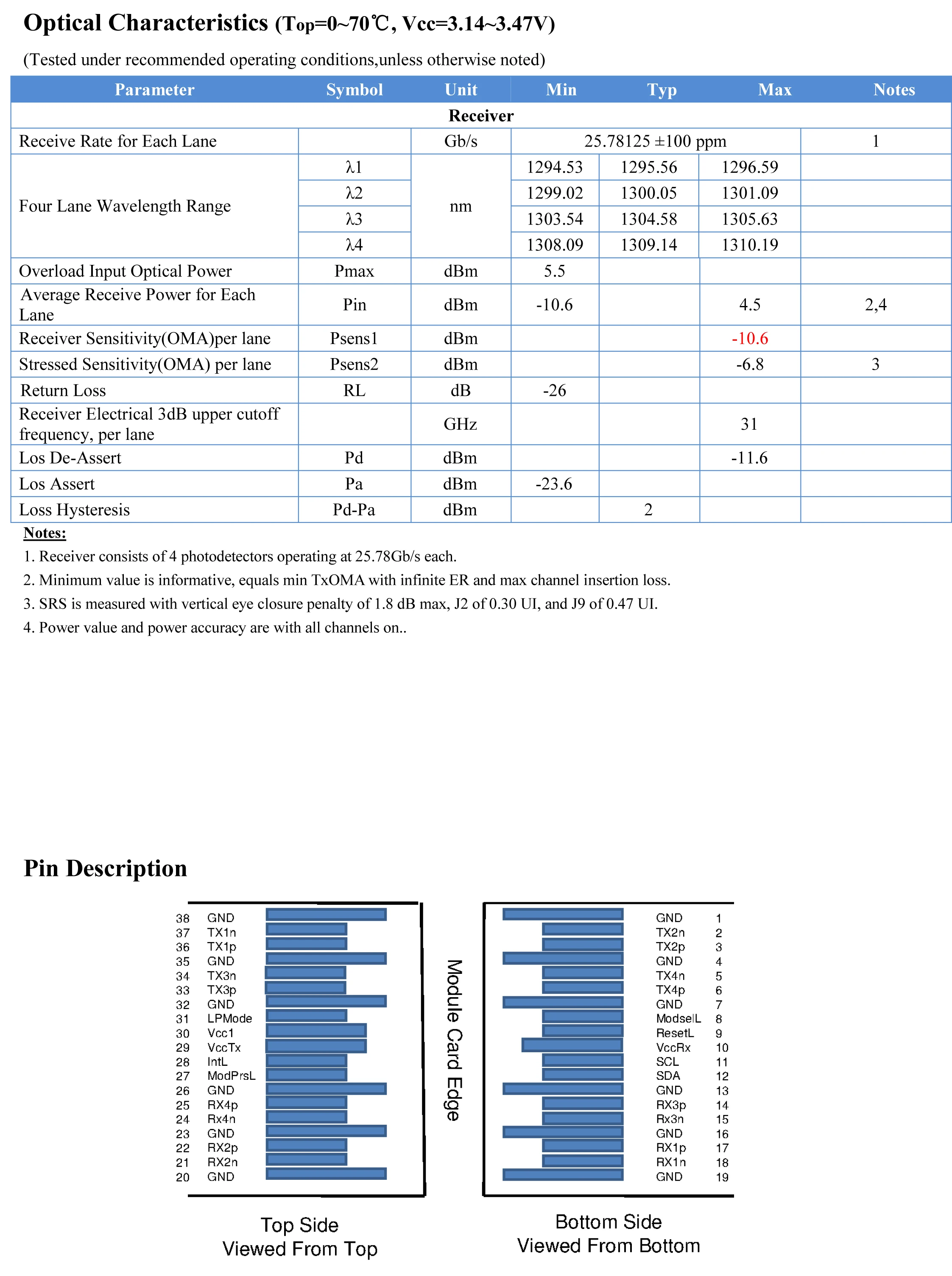 100Gb/s QSFP28 LR4 10km LC LWDM Single Data Rate