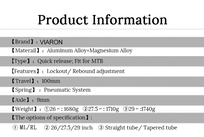 ·Плавная езда: подвесные вилки для велосипеда, уникальное сочетание воздушных вилок и регулировки демпфирования. Сделайте ваш велосипед лучше гладким, чтобы кататься на улице.