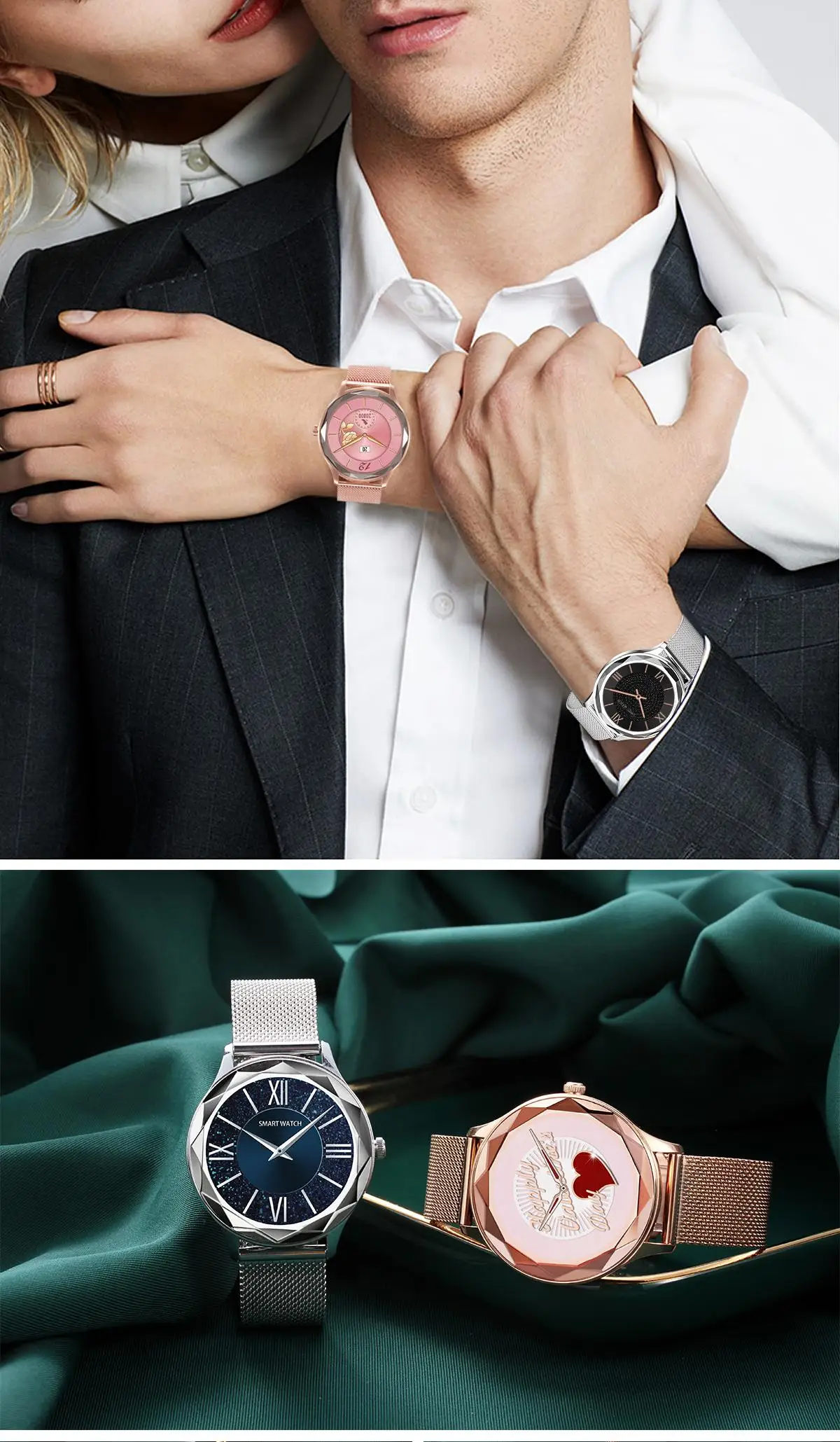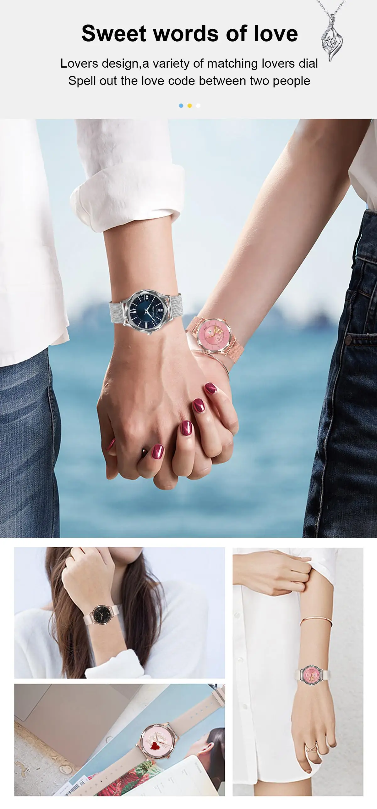 Цвет ремешка: серый силикон/розовый силикон/Золотая сталь/Серебристая сталь